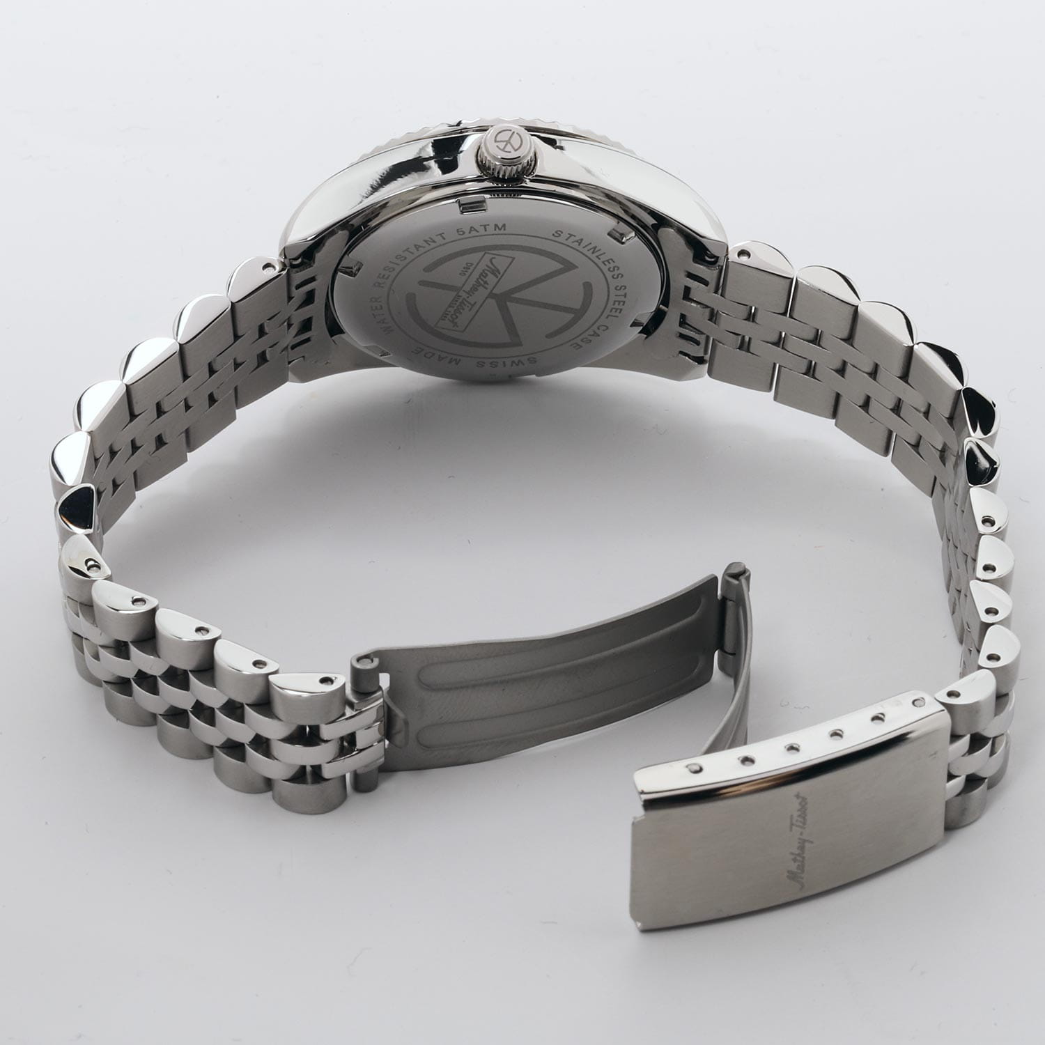 Женские кварцевые часы Mathey-Tissot Mathy D910AN — это стильное сочетание элегантности и современного дизайна. Изящный корпус выполнен из нержавеющей стали, диаметром 32 мм, что придаст образу женственности и романтизма. Изысканный циферблат с метками в виде точек украшены цирконами, что придает модели особый блеск. Циферблат защищен минеральным стекломМинеральное стеклоМинеральное стекло представляет собой искусственно выращенный минерал кварца. Такое стекло отличается особой устойчивостью к повреждениям и царапинам. Уступает по некоторым качествам сапфировому стеклу., обеспечивающий устойчивость к царапинам. Стрелки с люминесцентным покрытиемЛюминесцентное покрытиеПозволяет считывать показания времени в темноте. Производители наносят на стрелки, часовые индексы, безель или поверхность циферблата светонакопительный состав, дающий холодное свечение.. Окошко даты находится в положении 3 часа. Часы оснащены надежным кварцевым механизмом. Стальной браслет на раскладной застёжкеРаскладная застёжкаТакой тип застёжки используется только на браслетах из металла. Она никогда не раскрывается полностью, происходит разделение на 2 и более частей. Раскладывающая застёжка снизит вероятность потери часов к минимуму., гарантирует комфортное и безопасное ношение. Класс водозащиты: 50 метров позволит защитить корпус от случайных брызг или капель дождя. Mathey-Tissot — отличный выбор для тех, кто ценит утонченность и качество.