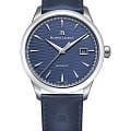 Мужские механические часы Maurice Lacroix 1975 Automatic Vagues Du Jura 756108-SS001-430-4 с автоматическим механизмом — это стильный аксессуар, сочетающий в себе швейцарское качество и функциональность. Модель оснащена калибром ML155, обеспечивающим запас хода до 42 часов, а также функцией «hacking» (остановка секундной стрелки при настройке времени). Корпус выполнен из нержавеющей стали диаметром 40 мм и толщиной 9 мм, что делает его прочным и устойчивым к царапинам. Циферблат синего цвета дополнен индикатором даты, а его поверхность защищена сапфировым стекломСапфировое стеклоПрочный и надёжный материал из кристалла сапфира синтетического происхождения, характеризующийся особой твёрдостью и устойчивостью к царапинам и повреждениям., устойчивым к повреждениям. Задняя крышка прозрачная, позволяя наблюдать за работой механизма. Браслет из натуральной кожи шириной 20 мм оснащён стандартной застёжкой, обеспечивающей комфорт и надёжную фиксацию на запястье. Часы водонепроницаемы до 100 метров (, что позволяет использовать их при плавании и других водных активностях без глубокого погружения. Это лимитированная серия, выпущенная всего 888 экземпляров, что подчёркивает её уникальность. Гарантия 2 года подтверждает качество и долговечность изделия. Эти часы станут универсальным аксессуаром для тех, кто ценит сочетание стиля, функциональности и надёжности — идеальный выбор для повседневной носки и активного образа жизни.