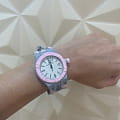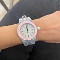 Кварцевый механизм с высокой точностью. Сапфировое стеклоСапфировое стеклоПрочный и надёжный материал из кристалла сапфира синтетического происхождения, характеризующийся особой твёрдостью и устойчивостью к царапинам и повреждениям. устойчивое к появлению царапин, обладающее высокой прозрачностью. Стрелки с люминесцентным покрытиемЛюминесцентное покрытиеПозволяет считывать показания времени в темноте. Производители наносят на стрелки, часовые индексы, безель или поверхность циферблата светонакопительный состав, дающий холодное свечение.. Класс водозащиты: 100 метров, позволит плавать, нырять и заниматься другими водными видами спорта. Корпус часов изготовлен из переработанного пластика из океанов. Силиконовый ремешок с классической застежкой.