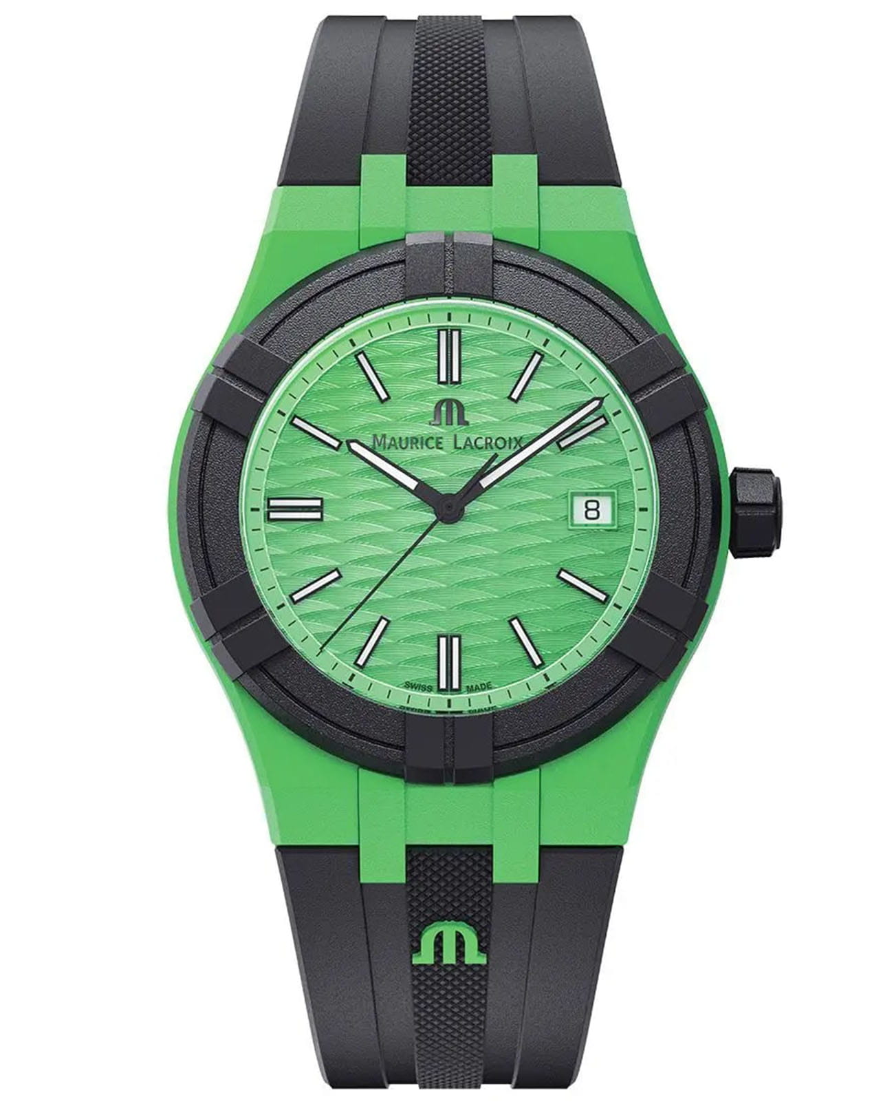 Часы AIKON #tide обладают всеми преимуществами AIKON, но кроме того, они выполнены из особого материала под названием #tideocean – переработанного океанского пластика, усиленного стекловолокном. В результате сложного технологического процесса переработки получен композитный материал, вдвое превосходящий по прочности обычный пластик. Износостойкость композита #tideocean в пять раз выше полиэтилентерефталата (ПЭТ). И еще немаловажный экологический фактор – в процессе превращения океанского пластика в материал #tideocean углеродные выбросы в атмосферу значительно снижаются, чем при обычном процессе выпуска первичного пластика. В новой модели безельБезельВнешний ободок, закрепляющий стекло. В спортивных часах так называется поворотное кольцо с делениями на циферблате, выполняет роль таймера – замеряет отрезки времени на шкале. Неподвижный безель – элемент декора. Однонаправленно вращающийся безель на дайверских часах позволяет фиксировать моменты погружения и выныривания на поверхность., корпус, задняя крышка, заводная головка, наконечник и застежка выполнены из композитного материала #tideocean. 17 пластиковых бутылок требуется для производства одних отличных часов и их специальной упаковки, также на 100% состоящей из материала #tide, появившегося в результате отходов пластика в океане. В результате такой переработки выигрывают все. Мужские швейцарские кварцевые часы Maurice Lacroix Aikon Quartz AI2008-70070-300-0. Сапфировое стеклоСапфировое стеклоПрочный и надёжный материал из кристалла сапфира синтетического происхождения, характеризующийся особой твёрдостью и устойчивостью к царапинам и повреждениям. устойчивое к появлению царапин, обладающее высокой прозрачностью. Зеленый циферблат. Стрелки и метки с люминесцентным покрытиемЛюминесцентное покрытиеПозволяет считывать показания времени в темноте. Производители наносят на стрелки, часовые индексы, безель или поверхность циферблата светонакопительный состав, дающий холодное свечение.. Класс водозащиты: 100 метров, позволит плавать, нырять и заниматься другими водными видами спорта. Окошко даты находится в положении 3 часов. Циферблат с тематическим гильошированием "Vagues du Jura". Корпус выполнен из переработанного пластика, ранее загрязнявшего Мировой океан. Каучуковый ремешок с классической застежкой.