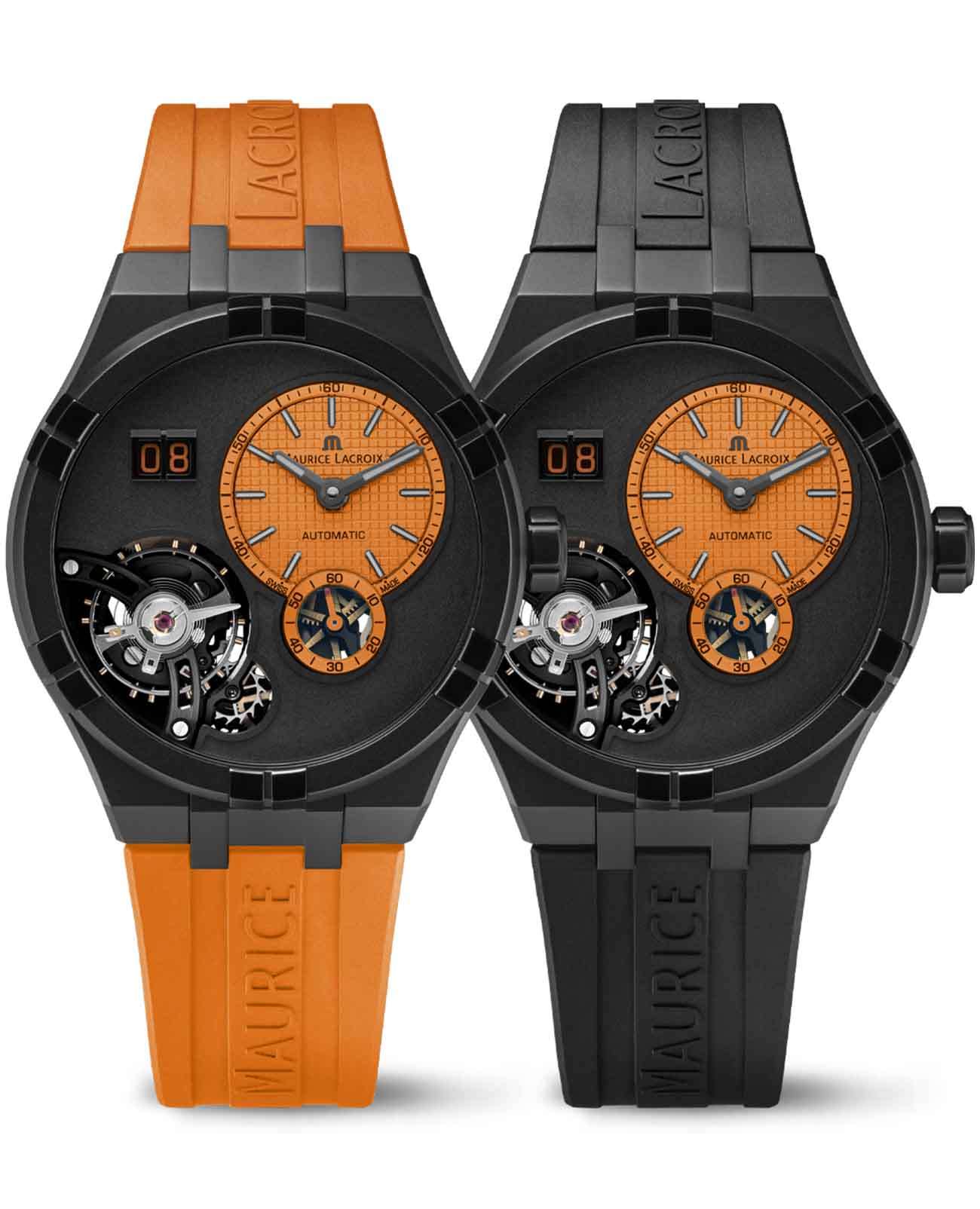 Швейцарские часы Maurice Lacroix Aikon Master Grand Date AI6118-DLB0J-530-J — это воплощение высоких стандартов часового искусства и современного стиля. В основе этого изысканного аксессуара лежит надежный механический механизм с автоподзаводом, калибр ML331, который обеспечивает точность и долговечность. Часы обладают запасом хода в 50 часов, а частота их работы составляет 18 000 полуколебаний в час. Корпус изготовлен из стали с высокотехнологичным DLC-покрытиемDLC-покрытиеDiamond like carbon - одно из лучших видов покрытия, представляющее собой углерод с алмазными свойствами. На поверхность материала наносятся распавшиеся молекулы углерода, превращающиеся в плёнку из алмазоподобных связей, которая перенимает твёрдость алмаза., придающим дополнительную прочность и стойкость к износу. Черно-оранжевый циферблат выделяется благодаря эффектному дизайну со смещенным центром, а также прозрачному окошку, через которое можно наблюдать за работой механизма. БезельБезельВнешний ободок, закрепляющий стекло. В спортивных часах так называется поворотное кольцо с делениями на циферблате, выполняет роль таймера – замеряет отрезки времени на шкале. Неподвижный безель – элемент декора. Однонаправленно вращающийся безель на дайверских часах позволяет фиксировать моменты погружения и выныривания на поверхность. привлекает внимание своим оригинальным дизайном из шести «когтей». Водозащита на уровне 100WR позволяет использовать часы в различных условиях, включая плавание. Стрелки и метки с люминесцентным покрытиемЛюминесцентное покрытиеПозволяет считывать показания времени в темноте. Производители наносят на стрелки, часовые индексы, безель или поверхность циферблата светонакопительный состав, дающий холодное свечение., что облегчает чтение времени даже в условиях слабого освещения. Сапфировое стеклоСапфировое стеклоПрочный и надёжный материал из кристалла сапфира синтетического происхождения, характеризующийся особой твёрдостью и устойчивостью к царапинам и повреждениям. с двойным антибликовым покрытиемАнтибликовое покрытиеСлой оксида металла в 0,13-0,3 микрон, благодаря которому стекло часов не бликует и не отражает свет. Антибликовое покрытие уменьшает отражение света в 10 раз, обеспечивая отличную читаемость показателей циферблата. защищает циферблат от царапин и бликов, а прозрачная задняя крышка из сапфирового стекла крепится на 7 винтах, позволяя наслаждаться видом внутреннего механизма. Часы также оснащены функцией большого календаря, расположенного на отметке 10 часов, и завинчивающейся заводной головкой, что добавляет надежности конструкции. Каучуковый ремешок с классической застежкой и системой быстрой замены обеспечивает комфорт и стильный внешний вид. В комплекте идет дополнительный сменный ремешок, что расширяет возможности для персонализации.
