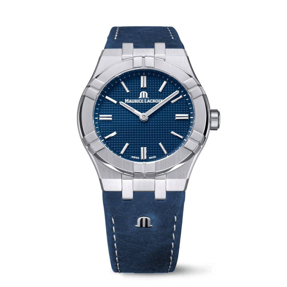 Maurice Lacroix AIKON Manual 39mm Collectors Edition AI7007-SS00E-430-C — лимитированная модель на 500 экземпляров, объединяющая архитектурную строгость дизайна AIKON и традиции классического ручного завода. Корпус диаметром 39 мм выполнен из нержавеющей стали с полированной и сатинированной отделкой, характерной для коллекции AIKON. Циферблат защищён сапфировым стекломСапфировое стеклоПрочный и надёжный материал из кристалла сапфира синтетического происхождения, характеризующийся особой твёрдостью и устойчивостью к царапинам и повреждениям. с двойным антибликовым покрытиемАнтибликовое покрытиеСлой оксида металла в 0,13-0,3 микрон, благодаря которому стекло часов не бликует и не отражает свет. Антибликовое покрытие уменьшает отражение света в 10 раз, обеспечивая отличную читаемость показателей циферблата., обеспечивающим чёткую читаемость в любых условиях. Синий циферблат с гильошированным узором Clous de Paris украшен накладными индексами и стрелками с люминесцентным покрытиемЛюминесцентное покрытиеПозволяет считывать показания времени в темноте. Производители наносят на стрелки, часовые индексы, безель или поверхность циферблата светонакопительный состав, дающий холодное свечение.. Окно даты расположено на позиции «6 часов». Внутри установлен мануфактурный калибр ML145 с ручным заводом, 18 камнями и частотой 28 800 пк/ч. Запас хода составляет до 42 часов. Прозрачная задняя крышка демонстрирует отделку механизма и гравировку с индивидуальным номером модели. Браслет из нержавеющей стали снабжён системой быстрой замены и застёжкой «бабочка» с кнопкамиЗастёжка "бабочка"Такой вид застёжки дополняется предохранителями, помогающими избежать случайного раскрытия браслета. Обладают изящным исполнением. , что повышает комфорт и универсальность ношения, в комплекте идет так же ремешок на стандартной застежке. Водонепроницаемость 100 метров делает AIKON Manual надёжным спутником в повседневной жизни. Эта лимитированная версия — настоящий подарок для ценителей ручной механики и чистоты формы.