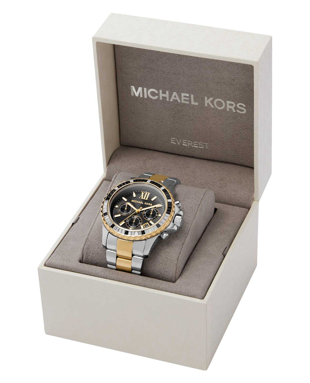 Женские американские часы-хронографХронографФункция позволяет измерять отрезки времени с особой точностью: часы, минуты, секунды. Верным признаком хронографа является наличие на циферблате 3 дополнительных окошек-счётчиков. с секундомеромСекундомерСекундоме́р — прибор, способный измерять интервалы времени с точностью до долей секунды. и с минеральным стекломМинеральное стеклоМинеральное стекло представляет собой искусственно выращенный минерал кварца. Такое стекло отличается особой устойчивостью к повреждениям и царапинам. Уступает по некоторым качествам сапфировому стеклу. Michael Kors Everest MK7209, кварцевый механизм с высокой точностью. Корпус часов изготовлен из нержавеющей стали. БезельБезельВнешний ободок, закрепляющий стекло. В спортивных часах так называется поворотное кольцо с делениями на циферблате, выполняет роль таймера – замеряет отрезки времени на шкале. Неподвижный безель – элемент декора. Однонаправленно вращающийся безель на дайверских часах позволяет фиксировать моменты погружения и выныривания на поверхность. с PVD-покрытиемPVDУльтратонкое покрытие наносится в технике вакуумного напыления, сочетает в себе нитрид титана особой прочности со слоем золота или оксида хрома. Несёт в себе декоративную или защитную функцию.украшен кристаллами. Циферблат выполнен по технологии Sunray (солнечные лучи). Три дополнительных индикатора. Метки в виде штрихов и римских цифр. Окошко даты находится между 4 и 5 часами. Стрелки с люминесцентным покрытиемЛюминесцентное покрытиеПозволяет считывать показания времени в темноте. Производители наносят на стрелки, часовые индексы, безель или поверхность циферблата светонакопительный состав, дающий холодное свечение.. Заводная головка с защитой. Класс водозащиты: 100 метров, позволит плавать, нырять и заниматься другими водными видами спорта. Стальной браслет с частичным PVD-покрытиемPVDУльтратонкое покрытие наносится в технике вакуумного напыления, сочетает в себе нитрид титана особой прочности со слоем золота или оксида хрома. Несёт в себе декоративную или защитную функцию. на раскладной застёжкеРаскладная застёжкаТакой тип застёжки используется только на браслетах из металла. Она никогда не раскрывается полностью, происходит разделение на 2 и более частей. Раскладывающая застёжка снизит вероятность потери часов к минимуму..