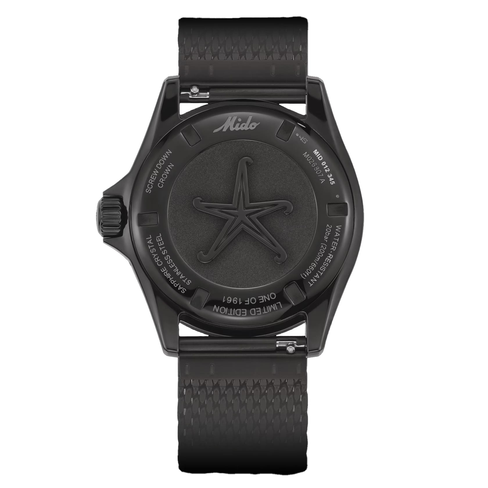 Мужские швейцарские механические часы Mido Ocean Star Decompression Timer 1961 Limited Edition M026.807.33.051.00, автоматический механизм с высокой точностью. Сапфировое стеклоСапфировое стеклоПрочный и надёжный материал из кристалла сапфира синтетического происхождения, характеризующийся особой твёрдостью и устойчивостью к царапинам и повреждениям. устойчивое к появлению царапин, обладающее высокой прозрачностью. Класс водозащиты: 200 метров, позволит плавать, нырять и заниматься другими водными видами спорта. Корпус часов изготовлен из стали с PVD-покрытиемPVDУльтратонкое покрытие наносится в технике вакуумного напыления, сочетает в себе нитрид титана особой прочности со слоем золота или оксида хрома. Несёт в себе декоративную или защитную функцию.. Стальной браслет миланского плетения с PVD-покрытиемPVDУльтратонкое покрытие наносится в технике вакуумного напыления, сочетает в себе нитрид титана особой прочности со слоем золота или оксида хрома. Несёт в себе декоративную или защитную функцию. на раскладном замкеРаскладной замокДанный вариант застежки используется только на часах с металлическим браслетом. Отличительная особенность такого крепления в том, что длина браслета становится универсальной и вы можете самостоятельно отрегулировать нужный вам размер – застежка просто двигается по браслету часов..