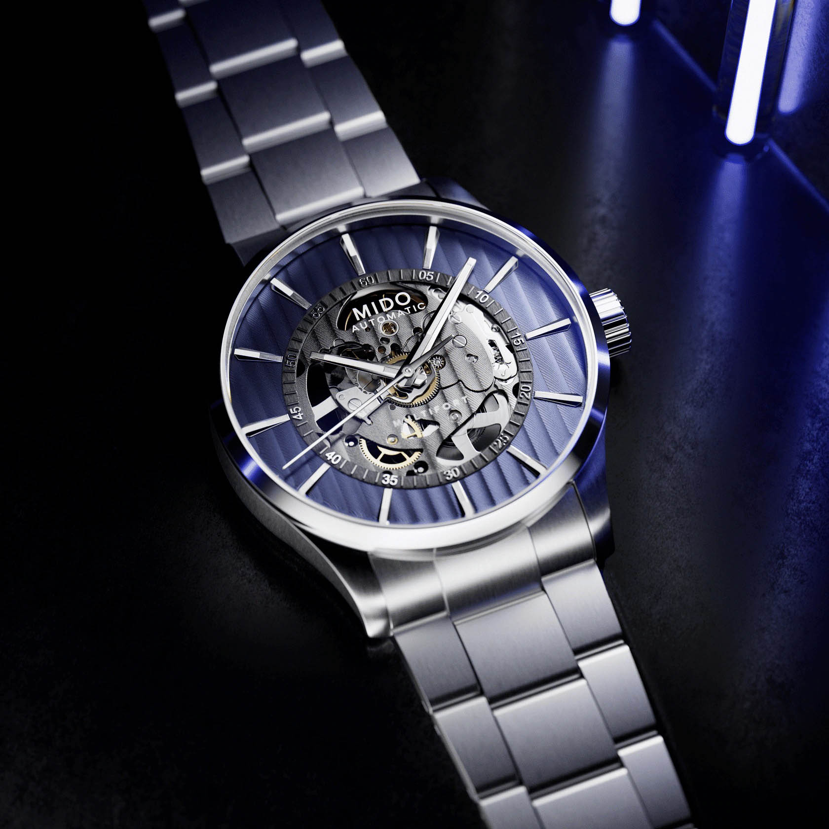 Швейцарские мужские механические часы Mido Multifort Skeleton Vertigo M038.436.11.041.00