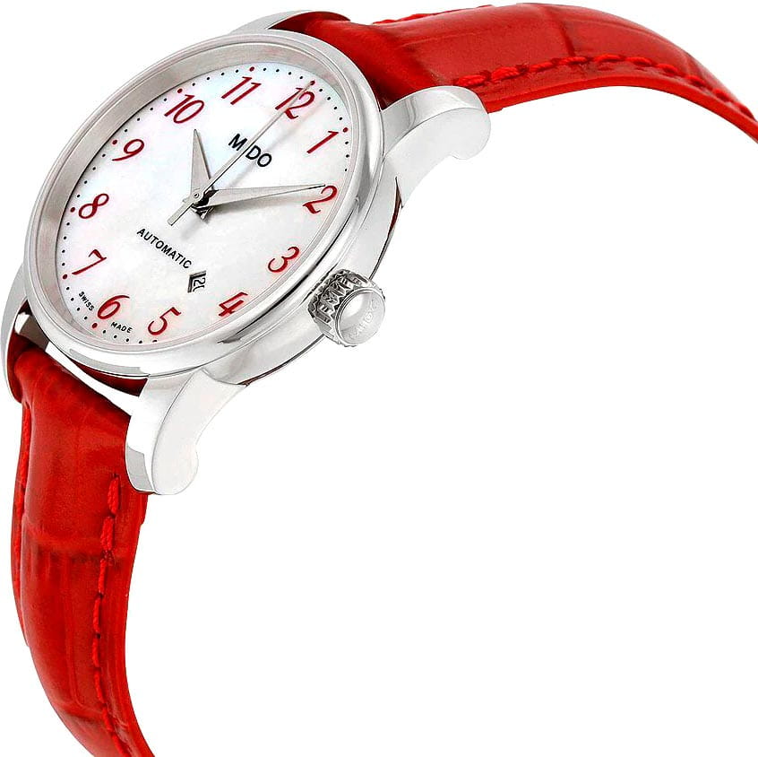 Женские швейцарские механические часы Mido Baroncelli Sz Lr A steel Lea.r M7600.4.39.7, автоматический механизм с высокой точностью. Сапфировое стеклоСапфировое стеклоПрочный и надёжный материал из кристалла сапфира синтетического происхождения, характеризующийся особой твёрдостью и устойчивостью к царапинам и повреждениям. устойчивое к появлению царапин, обладающее высокой прозрачностью. Класс водозащиты: 50 метров, позволит защитить корпус от случайных брызг или капель дождя. Корпус часов изготовлен из нержавеющей стали.