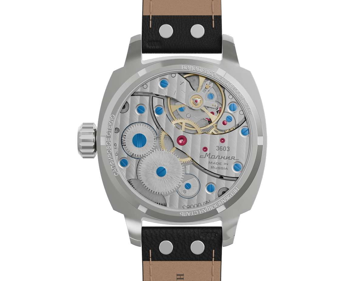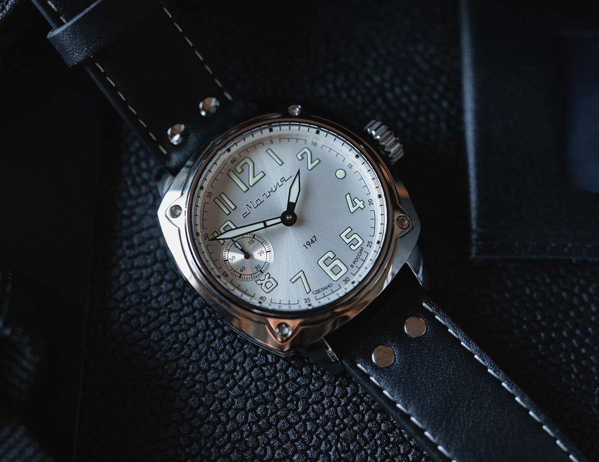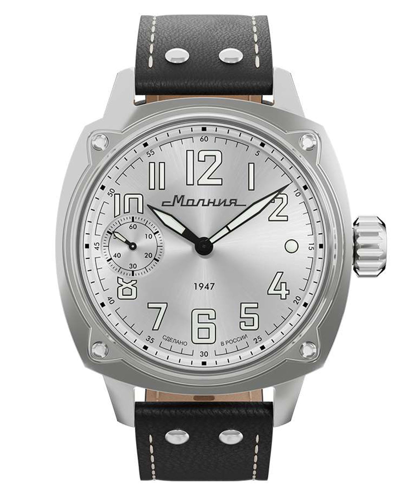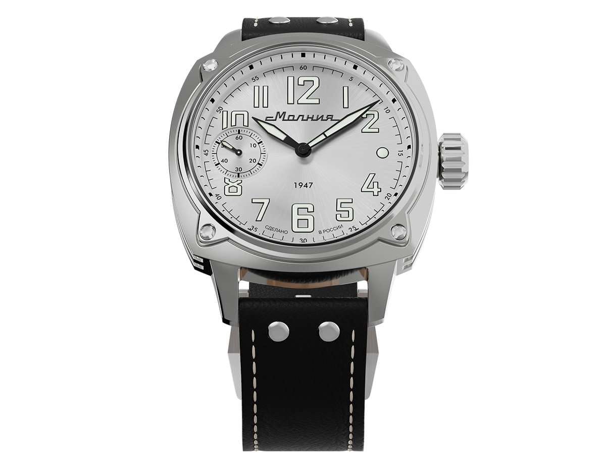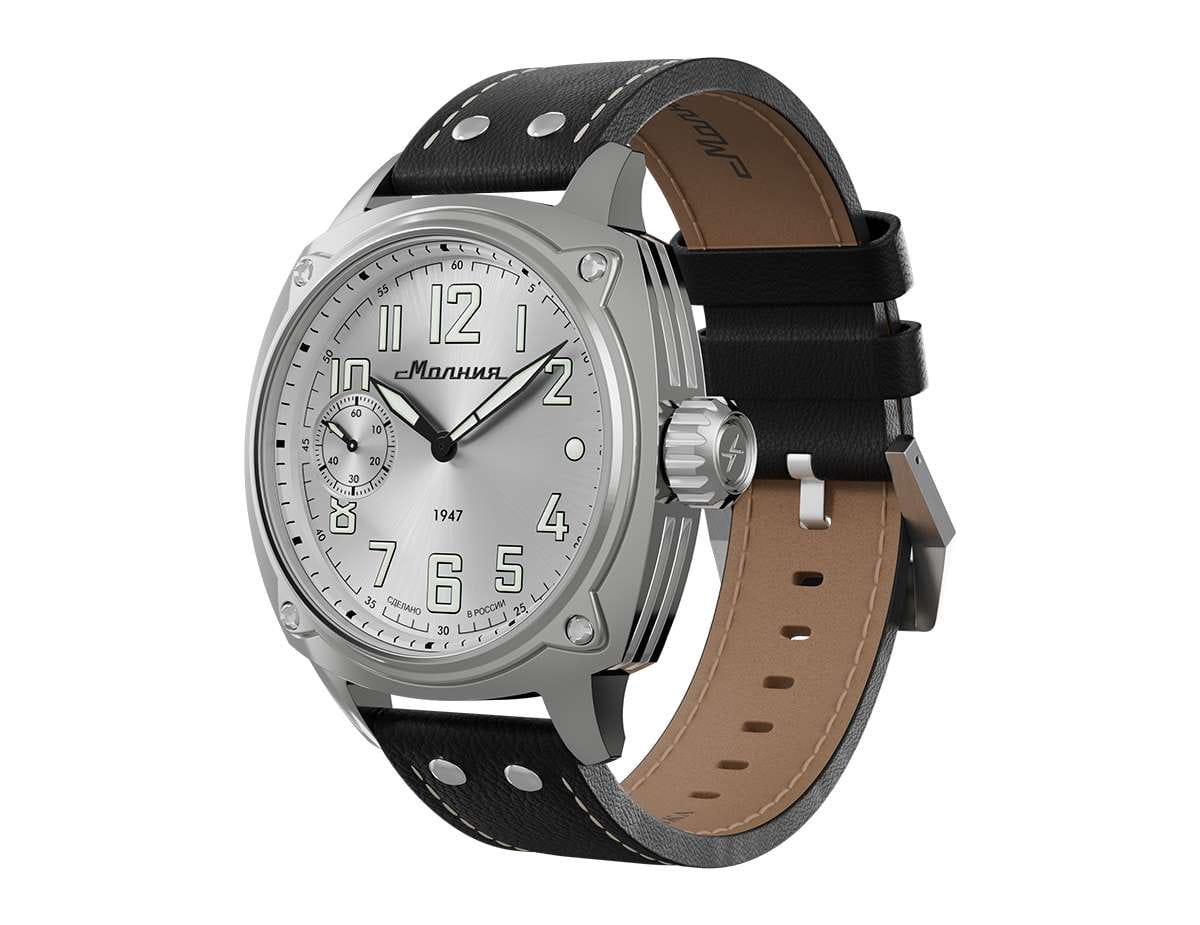 Мужские механические часы с ручным подзаводом — это аксессуар от легендарного бренда «МОЛНИЯ», созданный на Челябинском часовом заводе. Корпус диаметром 42 мм выполнен из нержавеющей стали 316L с зеркальной полировкой. БезельБезельВнешний ободок, закрепляющий стекло. В спортивных часах так называется поворотное кольцо с делениями на циферблате, выполняет роль таймера – замеряет отрезки времени на шкале. Неподвижный безель – элемент декора. Однонаправленно вращающийся безель на дайверских часах позволяет фиксировать моменты погружения и выныривания на поверхность. также выполнен из стали с зеркальной отделкой. Циферблат белого цвета оформлен индексами и стрелками. Малая секундная стрелка вынесена на позицию 9 часов. Стрелки и метки с люминесцентным покрытиемЛюминесцентное покрытиеПозволяет считывать показания времени в темноте. Производители наносят на стрелки, часовые индексы, безель или поверхность циферблата светонакопительный состав, дающий холодное свечение. Super-LumiNova, обеспечивающим хорошую читаемость в темноте. Циферблат защищён сапфировым стекломСапфировое стеклоПрочный и надёжный материал из кристалла сапфира синтетического происхождения, характеризующийся особой твёрдостью и устойчивостью к царапинам и повреждениям. с антибликовым покрытиемАнтибликовое покрытиеСлой оксида металла в 0,13-0,3 микрон, благодаря которому стекло часов не бликует и не отражает свет. Антибликовое покрытие уменьшает отражение света в 10 раз, обеспечивая отличную читаемость показателей циферблата.. Механизм — мануфактурный калибр 3603, собранный вручную, с запасом хода до 40 часов. Прозрачная задняя крышка позволяет наблюдать за работой механизма. Часы оснащены кожаным ремешком чёрного цвета с белой отстрочкой и классической пряжкой. Водонепроницаемость 100 м позволяет использовать часы для плавания и повседневного ношения. Идеальный выбор для тех, кто ценит российское качество и традиции.