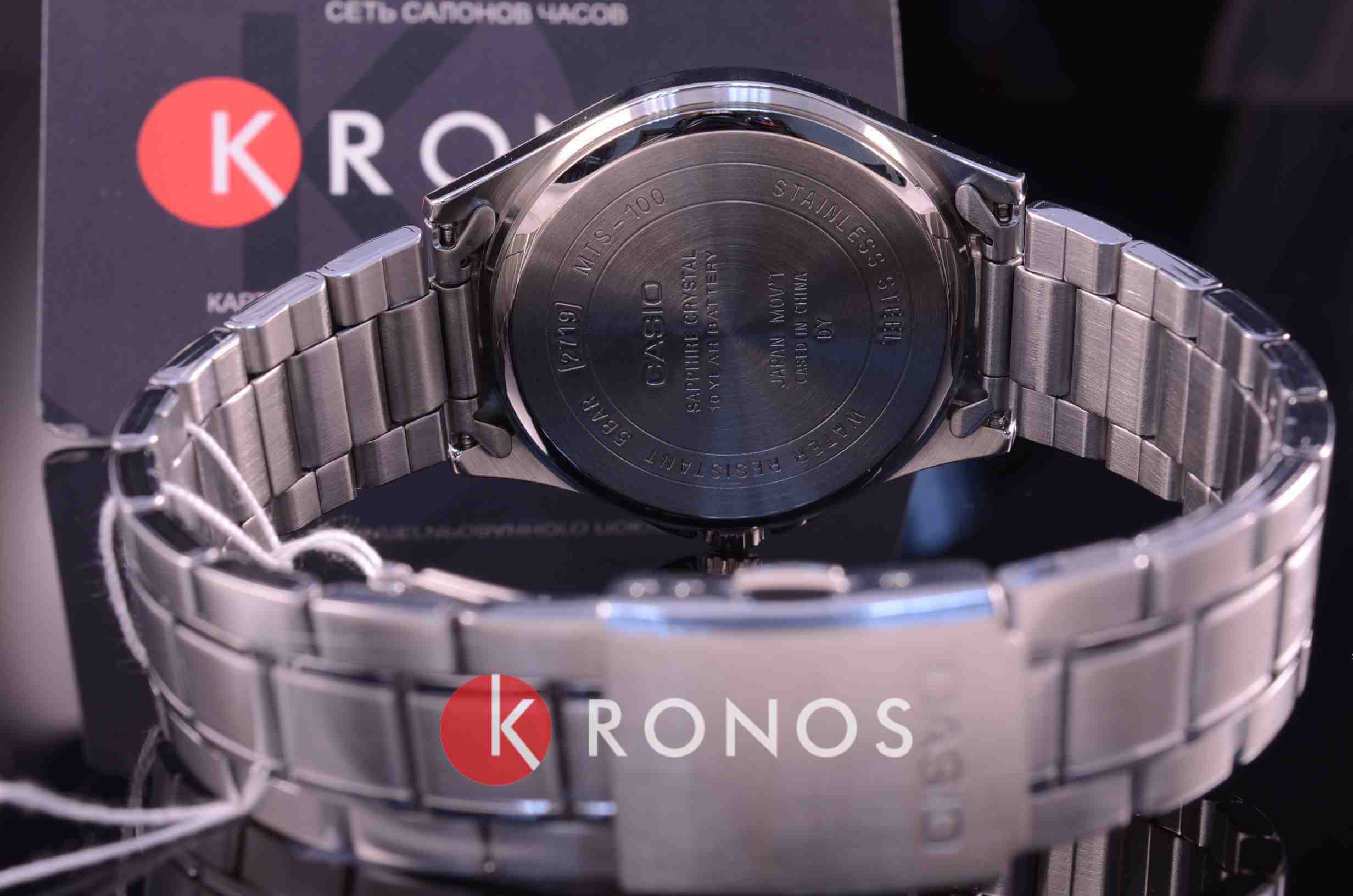 Японские мужские кварцевые часы с сапфировым стекломСапфировое стеклоПрочный и надёжный материал из кристалла сапфира синтетического происхождения, характеризующийся особой твёрдостью и устойчивостью к царапинам и повреждениям. Casio Collection MTS-100D-2A, кварцевый механизм с высокой точностью. Корпус и барслет часов изготовлены из нержавеющей. Подсветка NeobriteПодсветка NeobriteИспользование светонакопительных составов на основе сульфида цинка или алюмината стронция, яркий свет можно наблюдать на протяжении 6-10 часов после «зарядки» часов около источника света. обеспечивает длительное послесвечение в темноте даже после кратковременного нахождения на свету. Окошко даты находится в положении 3 часа. Батарея рассчитана на 10 лет. Заводная головка с защитой. Задняя крышка с винтовым фиксатором. Класс водозащиты: 50 метров, позволит защитить корпус от случайных брызг или капель дождя. Стальной браслет на раскладной застёжкеРаскладная застёжкаТакой тип застёжки используется только на браслетах из металла. Она никогда не раскрывается полностью, происходит разделение на 2 и более частей. Раскладывающая застёжка снизит вероятность потери часов к минимуму..