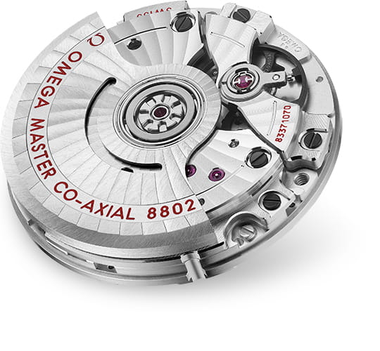 , а малый секундный циферблат и центральная минутная дорожка обведены кольцами. Часы, представленные на сером кожаном ремешке, приводятся в движение коаксиальным хронометром OMEGA Master Chronometer Calibre 8802, который виден через куполообразное сапфировое стеклоСапфировое стеклоПрочный и надёжный материал из кристалла сапфира синтетического происхождения, характеризующийся особой твёрдостью и устойчивостью к царапинам и повреждениям., устойчивое к царапинам.