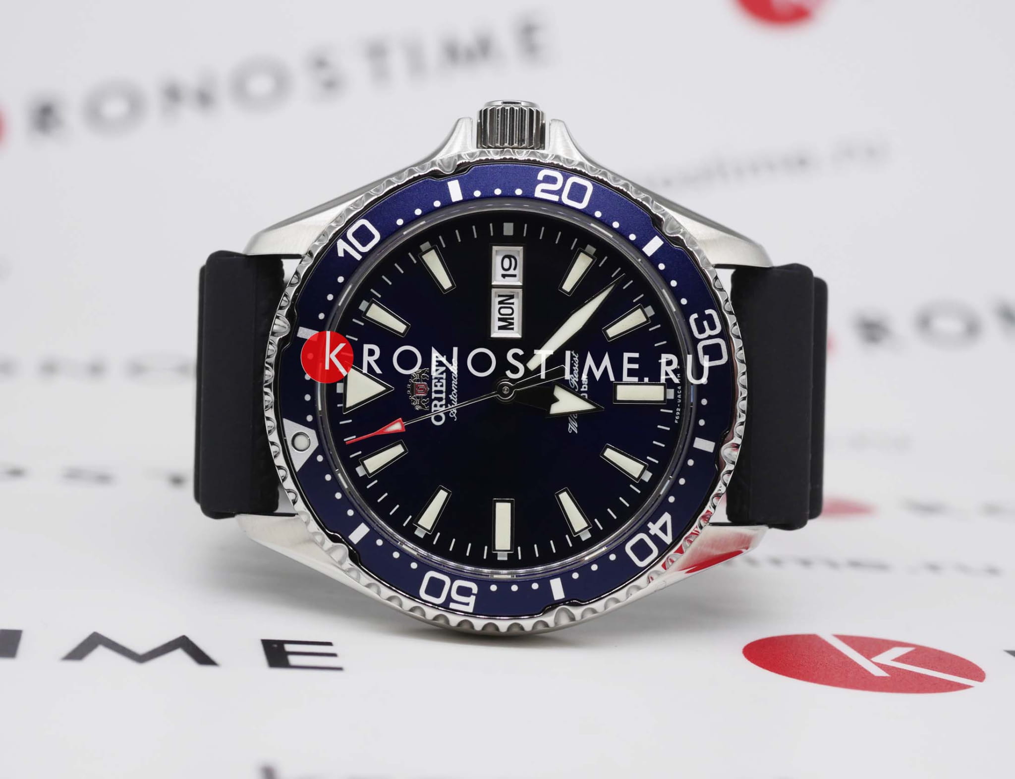 Часы Orient Kamasu RA-AA0006L — это гармоничное сочетание современного стиля и надежной функциональности. Корпус из нержавеющей стали диаметром 41,8 мм защищён Сапфировым стекломСапфировое стеклоПрочный и надёжный материал из кристалла сапфира синтетического происхождения, характеризующийся особой твёрдостью и устойчивостью к царапинам и повреждениям., обеспечивающим долговечность и защиту от царапин. Эффектный синий циферблат украшен метками и стрелками с Люминесцентным покрытиемЛюминесцентное покрытиеПозволяет считывать показания времени в темноте. Производители наносят на стрелки, часовые индексы, безель или поверхность циферблата светонакопительный состав, дающий холодное свечение., что позволяет легко считывать время даже в условиях низкой освещенности. Однонаправленный БезельБезельВнешний ободок, закрепляющий стекло. В спортивных часах так называется поворотное кольцо с делениями на циферблате, выполняет роль таймера – замеряет отрезки времени на шкале. Неподвижный безель – элемент декора. Однонаправленно вращающийся безель на дайверских часах позволяет фиксировать моменты погружения и выныривания на поверхность. с алюминиевой вставкой подчеркивает спортивный характер часов и добавляет практичности. Автоматический механизм Orient Calibre F6922 с функцией ручного завода и остановки секундной стрелки гарантирует точность и автономность до 40 часов. Чёрный силиконовый ремешок с классической пряжкой обеспечивает комфорт и устойчивость к влаге. Водонепроницаемость до 200 метров делает эту модель идеальной для плавания и дайвинга, а окошко даты и дня недели, расположенное на отметке «3 часа», добавляет удобства в повседневной жизни. Часы Orient Kamasu RA-AA0006L19B — это выбор для тех, кто ценит стиль, надежность и функциональность.