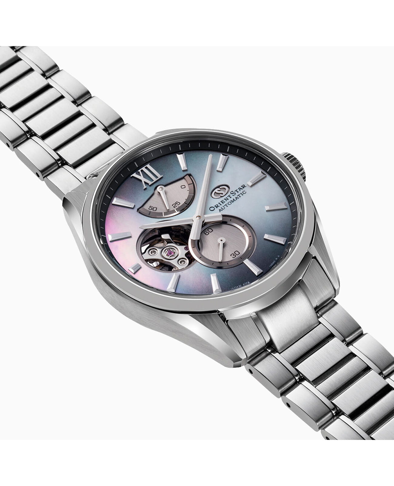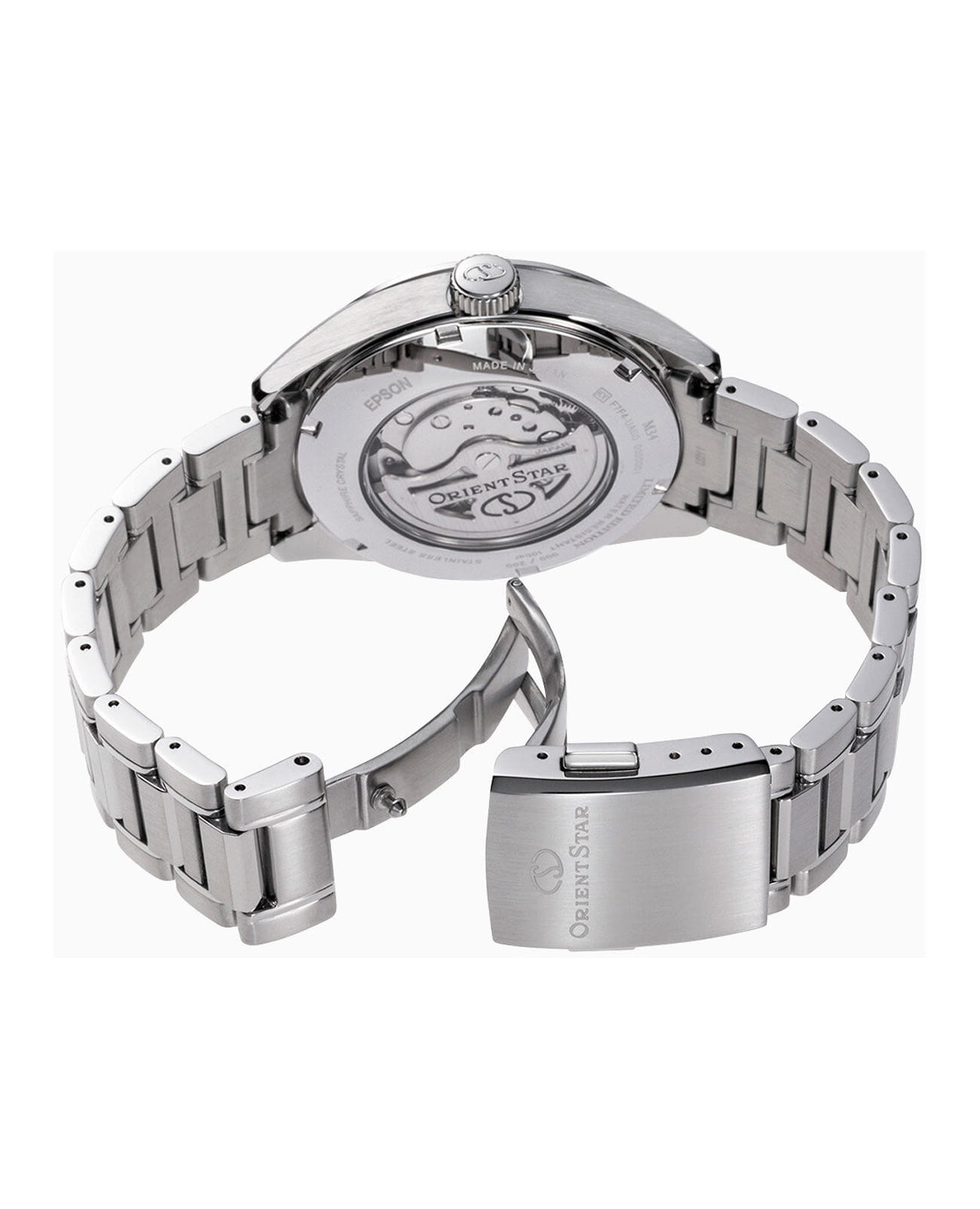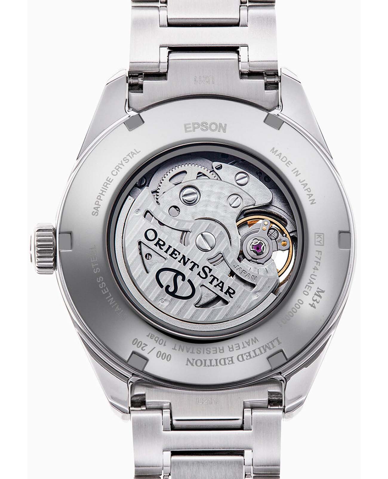 Модель оснащена автоматическим механизмом с ручным заводом Cal.F7F44, разработанным компанией Orient Star. Точность хода составляет от +15 до -5 секунд в сутки, а запас хода достигает 50 часов благодаря усовершенствованной системе передачи энергии. Функциональные элементы, такие как индикатор запаса хода и механизм остановки. 24 камня в механизме и вибрация 21,600 колебаний/час обеспечивают плавность хода и долговечность.