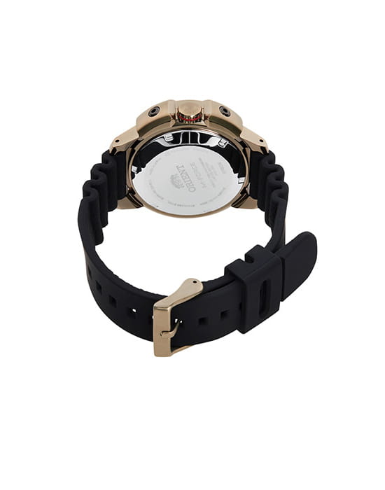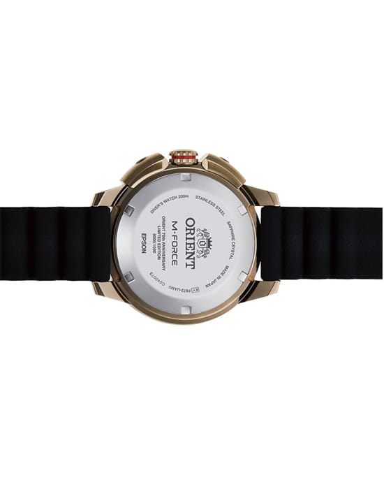 Лимитированная серия из 1600 экземпляров. Мужские механические часы с автоподзаводом. Калибр механизма F6722 на 22 камнях. Частота 21 600 полуколебаний в час. Запас хода 40 часов. Центральные часовая, минутная и секундная стрелки. Апертура даты в позиции 3 часов. Золотисто-черный циферблат. Люминесцентные стрелки и часовые индексы. Круглый корпус выполнен из нержавеющей стали с золотистым PVD покрытием. Диаметр корпуса составляет 45 мм. Заводная головка с защитой. Черный каучуковый ремешок, стандартная застежка. Устойчивое к возникновению царапин сапфировое стекло с антибликовым покрытием. Водостойкость WR 200 (погружение с аквалангом).