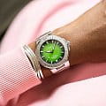 Ограниченная серия Payoon создана на базе Oris Aquis Date Calibre 400 и выпущена ограниченной серией из 250 экземпляров. Она имеет зеленый циферблат, напоминающий цвет воды острова Ко Либонг, серый рельефный безель, напоминающий цвет кожи дюгоней, и гравировку с изображением дюгоня и его детеныша на задней крышке.