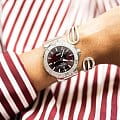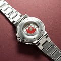 Многокомпонентный корпус из нержавеющей стали, керамический безельБезельВнешний ободок, закрепляющий стекло. В спортивных часах так называется поворотное кольцо с делениями на циферблате, выполняет роль таймера – замеряет отрезки времени на шкале. Неподвижный безель – элемент декора. Однонаправленно вращающийся безель на дайверских часах позволяет фиксировать моменты погружения и выныривания на поверхность. с минутной шкалой. Сапфировое стеклоСапфировое стеклоПрочный и надёжный материал из кристалла сапфира синтетического происхождения, характеризующийся особой твёрдостью и устойчивостью к царапинам и повреждениям., выпуклое с обеих сторон, внутреннее антибликовое покрытие. Стрелки и метки с люминесцентным покрытиемЛюминесцентное покрытиеПозволяет считывать показания времени в темноте. Производители наносят на стрелки, часовые индексы, безель или поверхность циферблата светонакопительный состав, дающий холодное свечение.. Завинчивающаяся прозрачная задняя крышка из минерального стеклаМинеральное стеклоМинеральное стекло представляет собой искусственно выращенный минерал кварца. Такое стекло отличается особой устойчивостью к повреждениям и царапинам. Уступает по некоторым качествам сапфировому стеклу..