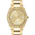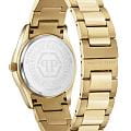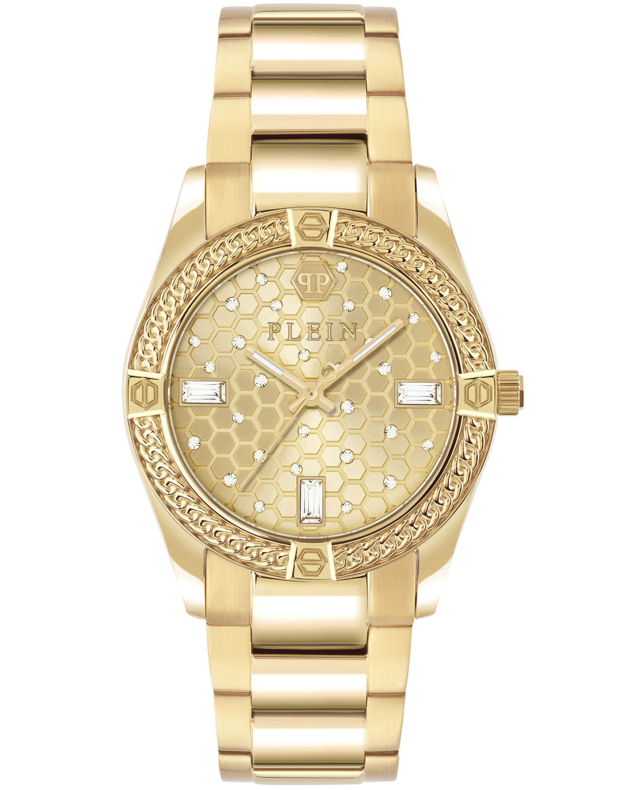 Женские кварцевые часы Philipp Plein Plein Icon Chain PW1FA0425 — это стильное сочетание элегантности и современного дизайна. Изящный корпус выполнен из нержавеющей стали с PVD-покрытиемPVDУльтратонкое покрытие наносится в технике вакуумного напыления, сочетает в себе нитрид титана особой прочности со слоем золота или оксида хрома. Несёт в себе декоративную или защитную функцию. золотистого цвета, диаметром 36 мм, что придаст образу женственности и романтизма. Изысканный циферблат с метками в виде штрихов придает модели особый блеск. Циферблат защищен минеральным стекломМинеральное стеклоМинеральное стекло представляет собой искусственно выращенный минерал кварца. Такое стекло отличается особой устойчивостью к повреждениям и царапинам. Уступает по некоторым качествам сапфировому стеклу., обеспечивающий устойчивость к царапинам и украшен кристаллами. Стрелки с люминесцентным покрытиемЛюминесцентное покрытиеПозволяет считывать показания времени в темноте. Производители наносят на стрелки, часовые индексы, безель или поверхность циферблата светонакопительный состав, дающий холодное свечение.. Часы оснащены надежным кварцевым механизмом. Стальной браслет с PVD-покрытиемPVDУльтратонкое покрытие наносится в технике вакуумного напыления, сочетает в себе нитрид титана особой прочности со слоем золота или оксида хрома. Несёт в себе декоративную или защитную функцию. на застёжке-бабочкеЗастёжка "бабочка"Такой вид застёжки дополняется предохранителями, помогающими избежать случайного раскрытия браслета. Обладают изящным исполнением. , гарантирует комфортное и безопасное ношение. Класс водозащиты: 50 метров позволит защитить корпус от случайных брызг или капель дождя. Phlipp Plein — отличный выбор для тех, кто ценит яркость и качество.