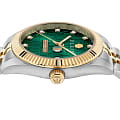 Philipp Plein Date Superlative Gent PWMFA0325 - это дерзкие и бескомпромиссные часы, воплощающие бунтарский дух бренда. Диаметр круглого корпуса из прочной нержавеющей стали равен 41 мм. Стальной браслет на застёжке «бабочка» с кнопкамиЗастёжка "бабочка"Такой вид застёжки дополняется предохранителями, помогающими избежать случайного раскрытия браслета. Обладают изящным исполнением. обеспечивает надёжную фиксацию и комфортное ношение. Метки в виде кристаллов Preciosa. Минеральное стеклоМинеральное стеклоМинеральное стекло представляет собой искусственно выращенный минерал кварца. Такое стекло отличается особой устойчивостью к повреждениям и царапинам. Уступает по некоторым качествам сапфировому стеклу. защищает циферблат от царапин. Люминесцентное покрытиеЛюминесцентное покрытиеПозволяет считывать показания времени в темноте. Производители наносят на стрелки, часовые индексы, безель или поверхность циферблата светонакопительный состав, дающий холодное свечение. стрелок и меток позволит следить за временем даже в полной темноте. БезельБезельВнешний ободок, закрепляющий стекло. В спортивных часах так называется поворотное кольцо с делениями на циферблате, выполняет роль таймера – замеряет отрезки времени на шкале. Неподвижный безель – элемент декора. Однонаправленно вращающийся безель на дайверских часах позволяет фиксировать моменты погружения и выныривания на поверхность. с PVD-покрытиемPVDУльтратонкое покрытие наносится в технике вакуумного напыления, сочетает в себе нитрид титана особой прочности со слоем золота или оксида хрома. Несёт в себе декоративную или защитную функцию.. Граненая заводная головка. Влагозащита: 50 метров, позволит защитить корпус от случайных брызг или капель дождя. Идеальный аксессуар для тех, кто ценит индивидуальность и не боится выделяться из толпы.