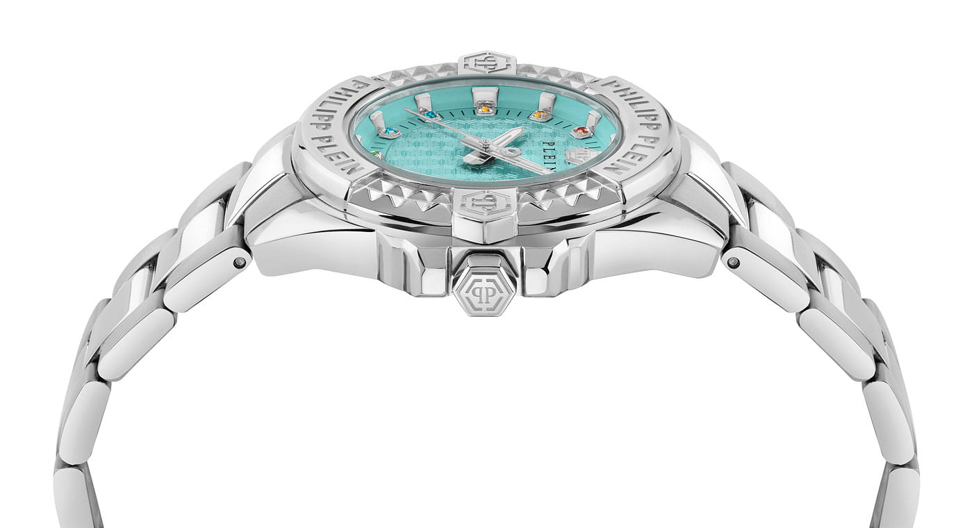 Philipp Plein Plein Majesty PWOFA0425 - дерзкое заявление любви к роскоши и бунтарскому стилю. Диаметр круглого корпуса из прочной нержавеющей стали равен 38 мм. Стальной браслет на застёжке-бабочке с кнопкамиЗастёжка "бабочка"Такой вид застёжки дополняется предохранителями, помогающими избежать случайного раскрытия браслета. Обладают изящным исполнением. обеспечивает надёжную фиксацию и комфортное ношение. Метки в виде кристаллов Preciosa. Минеральное стеклоМинеральное стеклоМинеральное стекло представляет собой искусственно выращенный минерал кварца. Такое стекло отличается особой устойчивостью к повреждениям и царапинам. Уступает по некоторым качествам сапфировому стеклу. защищает циферблат от царапин. Люминесцентное покрытиеЛюминесцентное покрытиеПозволяет считывать показания времени в темноте. Производители наносят на стрелки, часовые индексы, безель или поверхность циферблата светонакопительный состав, дающий холодное свечение. стрелок и меток позволит следить за временем даже в полной темноте. Влагозащита: 50 метров, позволит защитить корпус от случайных брызг или капель дождя. Идеальный аксессуар для тех, кто ценит индивидуальность и не боится выделяться из толпы.