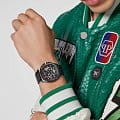 Яркие мужские часы с минеральным стекломМинеральное стеклоМинеральное стекло представляет собой искусственно выращенный минерал кварца. Такое стекло отличается особой устойчивостью к повреждениям и царапинам. Уступает по некоторым качествам сапфировому стеклу. Philipp Plein PWRAA0823, механический механизм с автоподзаводом.  Класс водозащиты: 50 метров, позволит защитить корпус от случайных брызг или капель дождя. Корпус часов изготовлен из стали с IP-покрытиемIP-покрытиеМетод ионного напыления. Демонстрирует повышенную устойчивость к истиранию, окислению и химическим веществам. Под воздействием высокого давления и температуры около 1500°C молекулы металла надёжно соединяются с частицами корпуса часов.. Стрелки и метки с люминесцентным покрытиемЛюминесцентное покрытиеПозволяет считывать показания времени в темноте. Производители наносят на стрелки, часовые индексы, безель или поверхность циферблата светонакопительный состав, дающий холодное свечение.. Скелетонизированные. Часы с механизмом, из которого удалён весь «лишний» металл, с прозрачными циферблатом и задней крышкой. Застёжка бабочка с кнопкамиЗастёжка "бабочка"Такой вид застёжки дополняется предохранителями, помогающими избежать случайного раскрытия браслета. Обладают изящным исполнением. .
