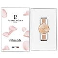 Женские кварцевые часы Pierre Lannier Eolia 041K958. Минеральное стеклоМинеральное стеклоМинеральное стекло представляет собой искусственно выращенный минерал кварца. Такое стекло отличается особой устойчивостью к повреждениям и царапинам. Уступает по некоторым качествам сапфировому стеклу. устойчивое к мелким механическим повреждениям. Центральные часовая и минутная стрелки. Корпус выполнен из нержавеющей стали с IP-покрытиемIP-покрытиеМетод ионного напыления. Демонстрирует повышенную устойчивость к истиранию, окислению и химическим веществам. Под воздействием высокого давления и температуры около 1500°C молекулы металла надёжно соединяются с частицами корпуса часов.. Водостойкость: 50 метров, позволит защитить корпус от случайных брызг или капель дождя. Стальной браслет миланского плетения с раскладной застёжкойРаскладная застёжкаТакой тип застёжки используется только на браслетах из металла. Она никогда не раскрывается полностью, происходит разделение на 2 и более частей. Раскладывающая застёжка снизит вероятность потери часов к минимуму.. Золотисто-розовый циферблат украшен кристаллами.