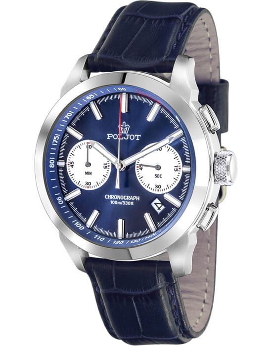 Poljot 6S21.741032 — классические мужские часы, в которых традиции российского часового мастерства сочетаются с современным дизайном. Корпус из нержавеющей стали подчёркивает солидность и надёжность модели, а насыщенный циферблат с лучевой текстурой придаёт образу выразительность и глубину. Два дополнительных счётчика хронографаХронографФункция позволяет измерять отрезки времени с особой точностью: часы, минуты, секунды. Верным признаком хронографа является наличие на циферблате 3 дополнительных окошек-счётчиков. обеспечивают точное измерение интервалов времени, дополняя функциональность часов. Контрастные стрелки и метки с люминесцентным покрытиемЛюминесцентное покрытиеПозволяет считывать показания времени в темноте. Производители наносят на стрелки, часовые индексы, безель или поверхность циферблата светонакопительный состав, дающий холодное свечение. обеспечивают отличную читаемость даже в условиях слабого освещения. Прочное минеральное стеклоМинеральное стеклоМинеральное стекло представляет собой искусственно выращенный минерал кварца. Такое стекло отличается особой устойчивостью к повреждениям и царапинам. Уступает по некоторым качествам сапфировому стеклу. защищает циферблат от царапин, а ремешок из натуральной кожи с классической пряжкой гарантирует комфорт и элегантную посадку на запястье. Poljot — это надёжный спутник современного мужчины, объединяющий точность, стиль и характер.