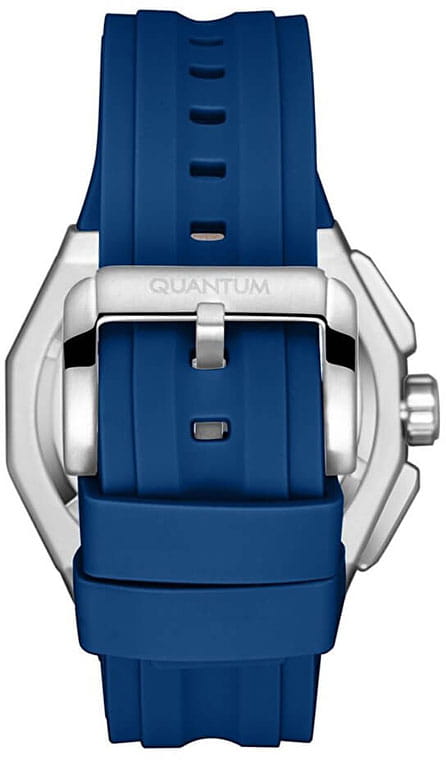 Мужские кварцевые часы Quantum HNG1097.359 из коллекции Hunter — круглый корпус размером 47 мм из нержавеющей стали, оснащённый функциями хронографаХронографФункция позволяет измерять отрезки времени с особой точностью: часы, минуты, секунды. Верным признаком хронографа является наличие на циферблате 3 дополнительных окошек-счётчиков. и окошком даты. Стрелки и метки с люминесцентным покрытиемЛюминесцентное покрытиеПозволяет считывать показания времени в темноте. Производители наносят на стрелки, часовые индексы, безель или поверхность циферблата светонакопительный состав, дающий холодное свечение.. Стекло — минеральноеМинеральное стеклоМинеральное стекло представляет собой искусственно выращенный минерал кварца. Такое стекло отличается особой устойчивостью к повреждениям и царапинам. Уступает по некоторым качествам сапфировому стеклу. с антибликовым покрытием. Механизм — японский кварцевый Seiko. Водонепроницаемость 100 м. Ремешок — синий силиконовый на стандартной застёжке. Идеальный выбор для тех, кто ценит турецкий дизайн и функциональный спортивный стиль.
