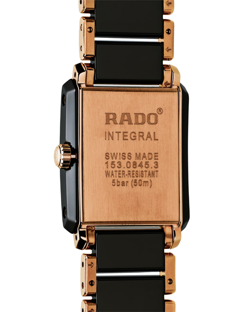 Наручным часам присущ роскошный стиль, изысканности добавляют 4 бриллианта в 0,026 карат, устоять перед их сиянием просто невозможно. Оригинальный браслет имеет высокопрочные вставки из высокотехнологичной керамикиВысокотехнологичная керамикаИнновационный запатентованный Rado материал с гладкой или матовой поверхностью. Керамика за счёт кристаллической структуры обладает повышенной устойчивостью от возникновения царапин. Материал способен принимать температуру тела человека, обеспечивая невероятный комфорт при ношении.. Модель комплектуется кварцевым механизмом ETA 976.001 с высокой точностью хода. Сапфировое стекло противостоит образованию царапин. Износоустойчивое PVD-покрытиеPVDУльтратонкое покрытие наносится в технике вакуумного напыления, сочетает в себе нитрид титана особой прочности со слоем золота или оксида хрома. Несёт в себе декоративную или защитную функцию.. Водостойкость 50 метров. Габариты: 22,7 x 33,1 x 6,5 мм.