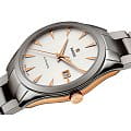Стильная и лаконичная модель относится к премиальному сегменту. Дизайн отличается классическим обликом и истинной элегантностью, жемчужный циферблат имеет узор «солнечные лучи». Браслет выполнен из плазменной керамикиВысокотехнологичная плазменная керамикаИнновационный материал, технология запатентована. Выплавление керамики осуществляется в печи при 20 000 °C, белоснежный материал под воздействием ультравысокой температуры приобретает уникальный блеск, присущий металлам., материал отличается надёжностью и долговечностью. Автоподзавод. Швейцарский автоматический механизм ETA C07.611 с увеличенным запасом хода до 80 часов. Выпуклое стекло из сапфира с антибликовой поверхностью. Прозрачная задняя крышка. Устойчивое к износу PVD-покрытиеPVDУльтратонкое покрытие наносится в технике вакуумного напыления, сочетает в себе нитрид титана особой прочности со слоем золота или оксида хрома. Несёт в себе декоративную или защитную функцию.. Прямоугольная апертура даты. . Диаметр корпуса: 42 мм.