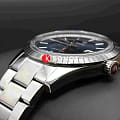 Премиальная модель стала современной интерпретацией знаковой линейки 1957 года, воплощающей ретро-элементы в новом формате. Синий циферблат в лаконичном исполнении дополнен фирменными логотипами. Часы выполнены из долговечной стали 316L, исключением стал фигурный безельБезельВнешний ободок, закрепляющий стекло. В спортивных часах так называется поворотное кольцо с делениями на циферблате, выполняет роль таймера – замеряет отрезки времени на шкале. Неподвижный безель – элемент декора. Однонаправленно вращающийся безель на дайверских часах позволяет фиксировать моменты погружения и выныривания на поверхность. из плазменной керамикиВысокотехнологичная плазменная керамикаИнновационный материал, технология запатентована. Выплавление керамики осуществляется в печи при 20 000 °C, белоснежный материал под воздействием ультравысокой температуры приобретает уникальный блеск, присущий металлам.. Автоматический калибр ETA C07.611 швейцарского производства с запасом хода на 80 часов. Для защиты циферблата и прозрачной задней крышки выбрано сапфировое стекло. Водонепроницаемость WR 50. Браслет с . Прямоугольная апертура даты. Диаметр корпуса: 41,8 мм.