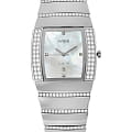 Часы Rado Sintra R13577909, произведение искусства и технологическое чудо, станут прекрасным дополнением к коллекции. Эти швейцарские часы оснащены кварцевым механизмом с указателем даты и тремя стрелками, заключенным в корпус из нержавеющей стали. Браслет изготовлен из высокотехнологичной керамикиВысокотехнологичная керамикаИнновационный запатентованный Rado материал с гладкой или матовой поверхностью. Керамика за счёт кристаллической структуры обладает повышенной устойчивостью от возникновения царапин. Материал способен принимать температуру тела человека, обеспечивая невероятный комфорт при ношении. с раскладной застёжкойРаскладная застёжкаТакой тип застёжки используется только на браслетах из металла. Она никогда не раскрывается полностью, происходит разделение на 2 и более частей. Раскладывающая застёжка снизит вероятность потери часов к минимуму.. Корпус украшен 48 бриллиантами, циферблат 4 бриллианта, браслет 102 бриллианта. Сапфировое стеклоСапфировое стеклоПрочный и надёжный материал из кристалла сапфира синтетического происхождения, характеризующийся особой твёрдостью и устойчивостью к царапинам и повреждениям. устойчивое к появлению царапин, обладающее высокой прозрачностью. Класс водозащиты: 30 метров, позволит защитить корпус от случайных брызг или капель дождя.