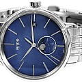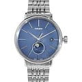 Роскошный перламутровый циферблат завораживает переливающейся синевой, напоминая нам о таинственных морских глубинах. Особой красотой обладает календарь, отображающий фазы луны. Такое оформление идеально сочетается с тонким металлическим ремешком из нержавеющей стали. Часы работают за счёт высокоточного кварцевого калибра ETA F05.841. Сапфировое стекло имеет антибликовое покрытие. Апертура даты. Диаметр корпуса: 34 мм.