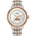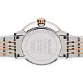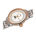 Роскошный перламутровый циферблат завораживает переливающимися оттенками, такое исполнение являет собой настоящую элегантность и особый стиль. Привлекательностью обладает и календарь, отображающий фазы луны. Подобное оформление идеально сочетается с необычным стальным браслетом. Стекло из сапфираСапфировое стеклоПрочный и надёжный материал из кристалла сапфира синтетического происхождения, характеризующийся особой твёрдостью и устойчивостью к царапинам и повреждениям. имеет антибликовое покрытие. PVD-покрытиеPVDУльтратонкое покрытие наносится в технике вакуумного напыления, сочетает в себе нитрид титана особой прочности со слоем золота или оксида хрома. Несёт в себе декоративную или защитную функцию. корпуса и браслета, оттенок "розовое золото". Диаметр корпуса: 34 мм. Указатель фаз Луны расположен в районе 6 часа.