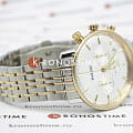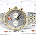 Классический хронографХронографФункция позволяет измерять отрезки времени с особой точностью: часы, минуты, секунды. Верным признаком хронографа является наличие на циферблате 3 дополнительных окошек-счётчиков. премиального характера имеет стильное серебристо-золотое исполнение. Расцветка позволяет удачно комбинировать часы с любым образом. Швейцарский кварцевый механизм ETA E57.251 с абсолютной точностью хода. Сапфировое стекло с покрытием «антиблик». Корпус и браслет из хирургической стали с частичным PVD-покрытиемPVDУльтратонкое покрытие наносится в технике вакуумного напыления, сочетает в себе нитрид титана особой прочности со слоем золота или оксида хрома. Несёт в себе декоративную или защитную функцию.. Водостойкость WR 50 – часы выдержат дождь и мойку машины. . Секундомер, окошко даты. Диаметр корпуса: 42 мм.