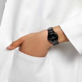 Швейцарские женские механические часы с автоподзаводом Rado True Automatic Diamonds R27242722. Сапфировое стеклоСапфировое стеклоПрочный и надёжный материал из кристалла сапфира синтетического происхождения, характеризующийся особой твёрдостью и устойчивостью к царапинам и повреждениям. устойчивое к появлению царапин, обладающее высокой прозрачностью. Корпус часов изготовлен из титана с PVD-покрытиемPVDУльтратонкое покрытие наносится в технике вакуумного напыления, сочетает в себе нитрид титана особой прочности со слоем золота или оксида хрома. Несёт в себе декоративную или защитную функцию. и высокотехнологичной керамикиВысокотехнологичная керамикаИнновационный запатентованный Rado материал с гладкой или матовой поверхностью. Керамика за счёт кристаллической структуры обладает повышенной устойчивостью от возникновения царапин. Материал способен принимать температуру тела человека, обеспечивая невероятный комфорт при ношении.. Циферблат украшен бриллиантами. Окошко даты находится в положении 3 часа. Класс водозащиты: 50 метров, позволит защитить корпус от случайных брызг или капель дождя. Браслет из высокотехнологичной керамикиВысокотехнологичная керамикаИнновационный запатентованный Rado материал с гладкой или матовой поверхностью. Керамика за счёт кристаллической структуры обладает повышенной устойчивостью от возникновения царапин. Материал способен принимать температуру тела человека, обеспечивая невероятный комфорт при ношении. на застёжке-бабочке с кнопкамиЗастёжка "бабочка"Такой вид застёжки дополняется предохранителями, помогающими избежать случайного раскрытия браслета. Обладают изящным исполнением. .
