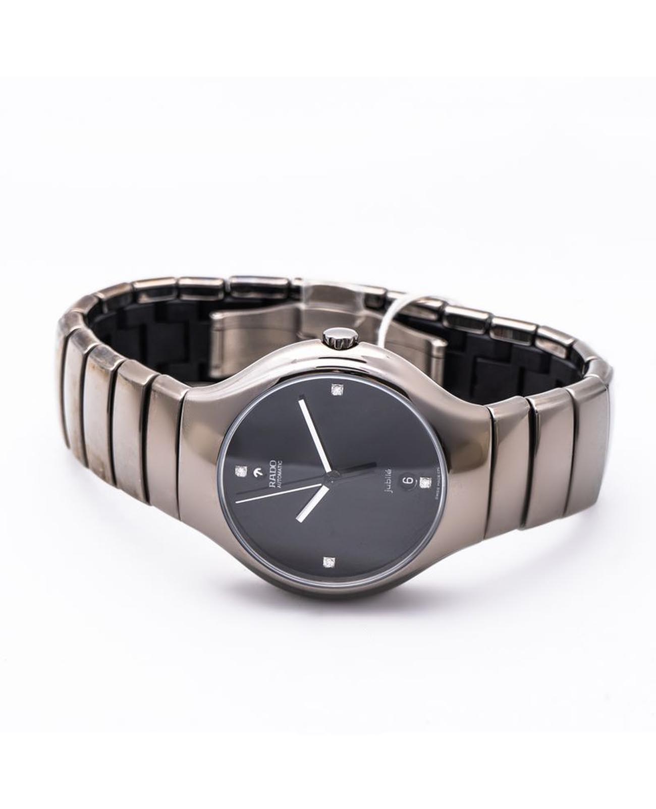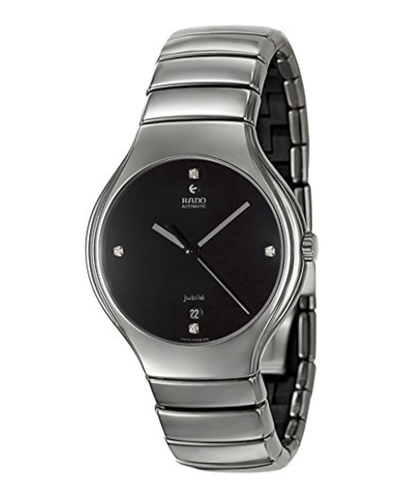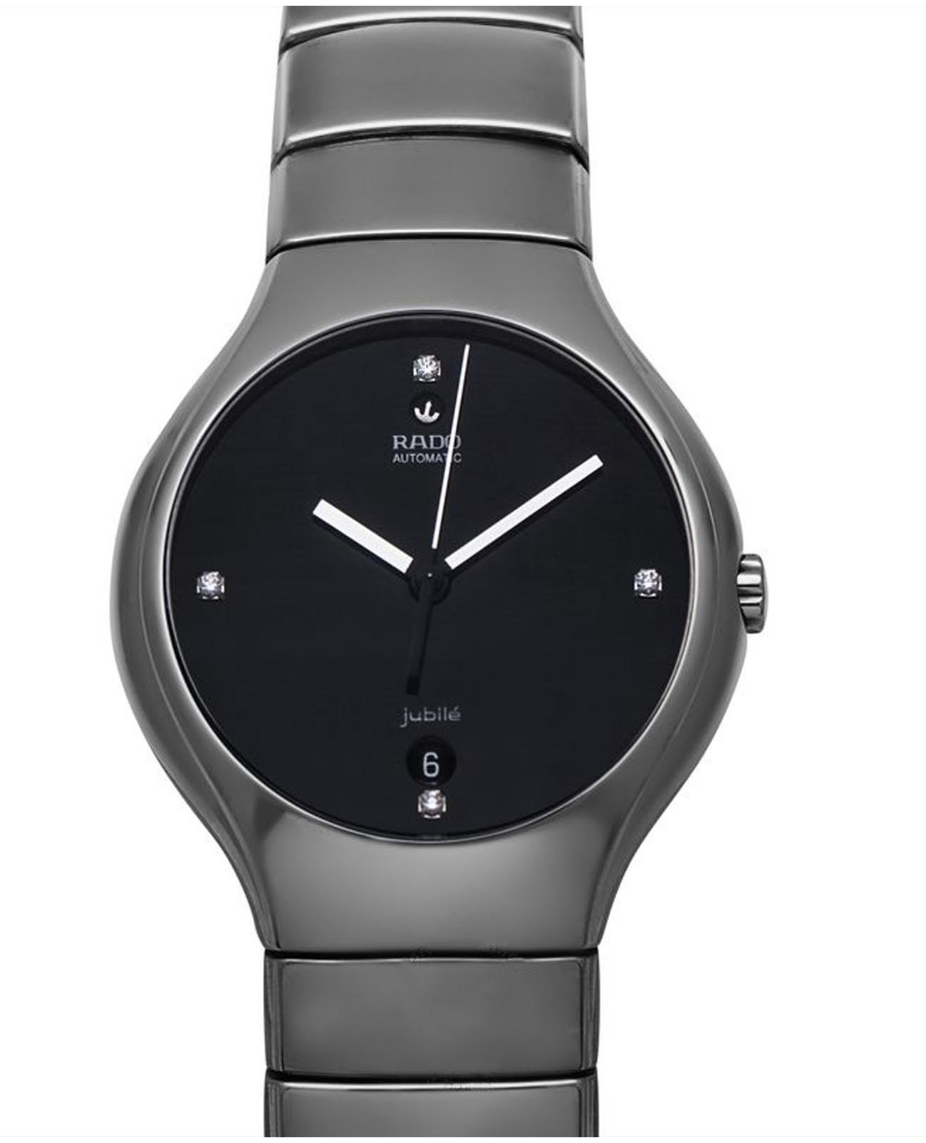 Мужские механические швейцарские часы с автоподзаводом Rado True R27351702. Сапфировое стеклоСапфировое стеклоПрочный и надёжный материал из кристалла сапфира синтетического происхождения, характеризующийся особой твёрдостью и устойчивостью к царапинам и повреждениям. устойчивое к мелким механическим повреждениям. Корпус часов изготовлен из высокотехнологичной керамикиВысокотехнологичная керамикаИнновационный запатентованный Rado материал с гладкой или матовой поверхностью. Керамика за счёт кристаллической структуры обладает повышенной устойчивостью от возникновения царапин. Материал способен принимать температуру тела человека, обеспечивая невероятный комфорт при ношении.. Цифрблат украшен бриллиантами. Класс водозащиты: 30 метров, позволит защитить корпус от случайных брызг или капель дождя. Браслет из высокотехнологичной керамикиВысокотехнологичная керамикаИнновационный запатентованный Rado материал с гладкой или матовой поверхностью. Керамика за счёт кристаллической структуры обладает повышенной устойчивостью от возникновения царапин. Материал способен принимать температуру тела человека, обеспечивая невероятный комфорт при ношении. на застёжке-бабочке с кнопкамиЗастёжка "бабочка"Такой вид застёжки дополняется предохранителями, помогающими избежать случайного раскрытия браслета. Обладают изящным исполнением. .