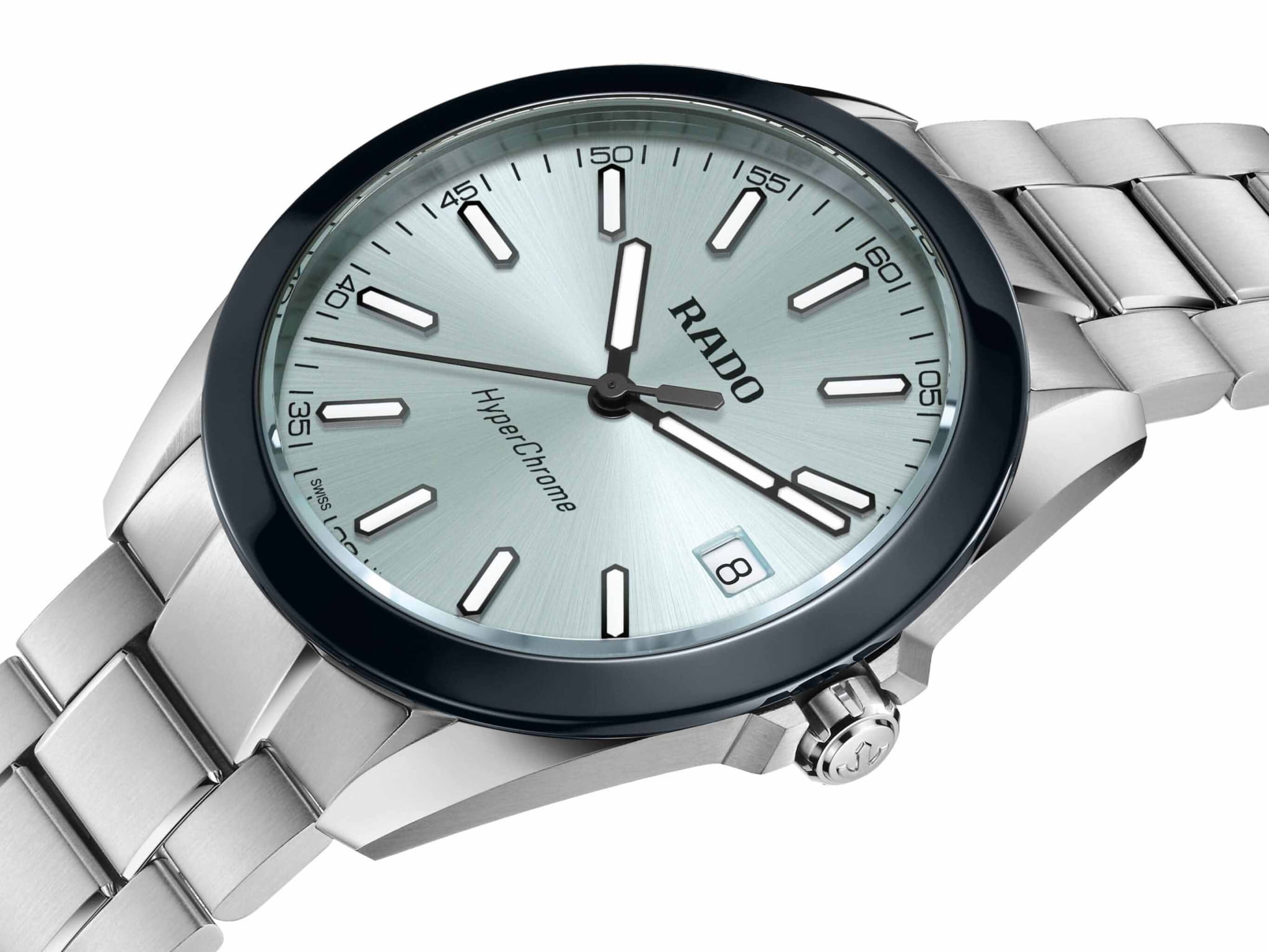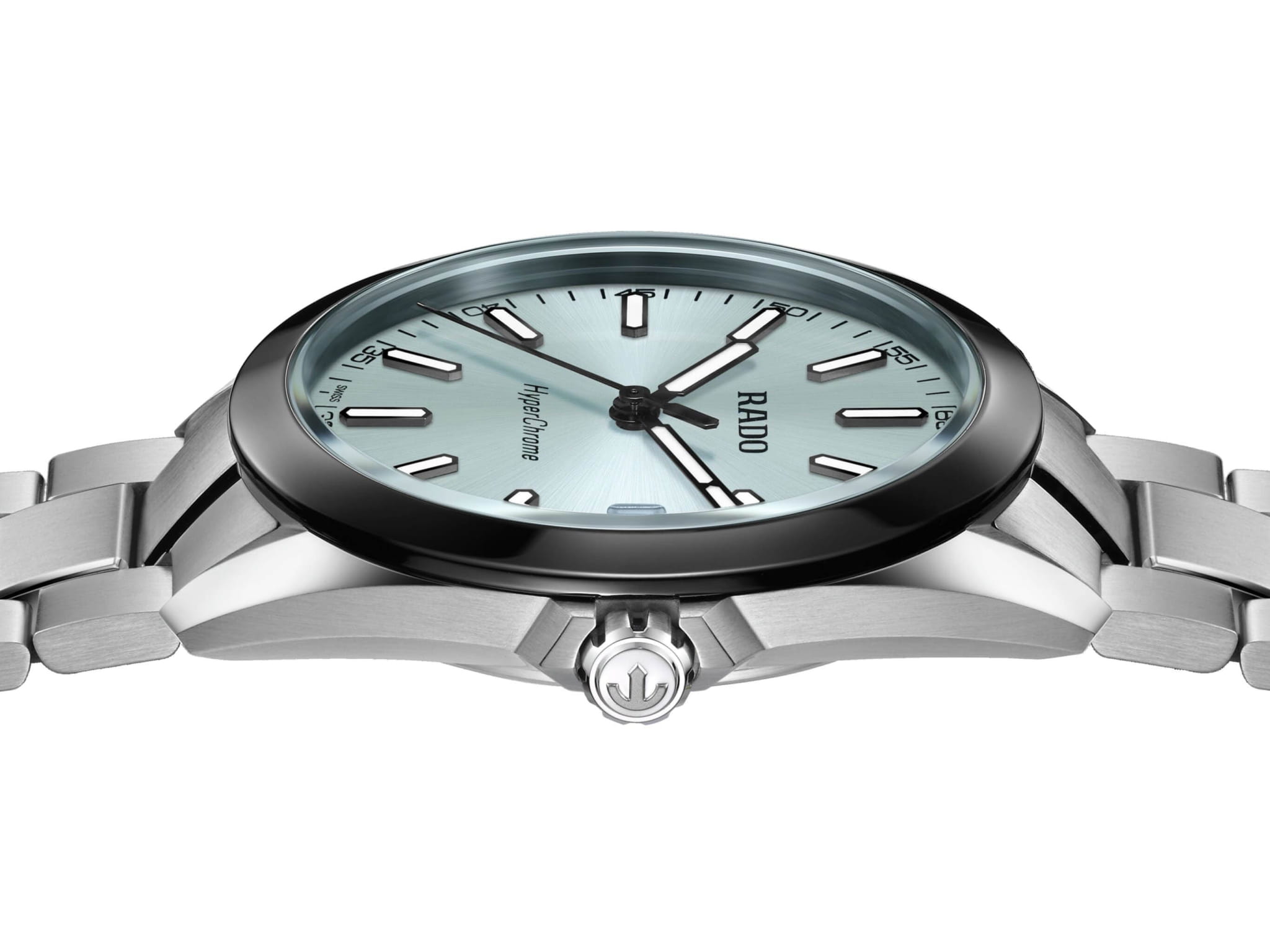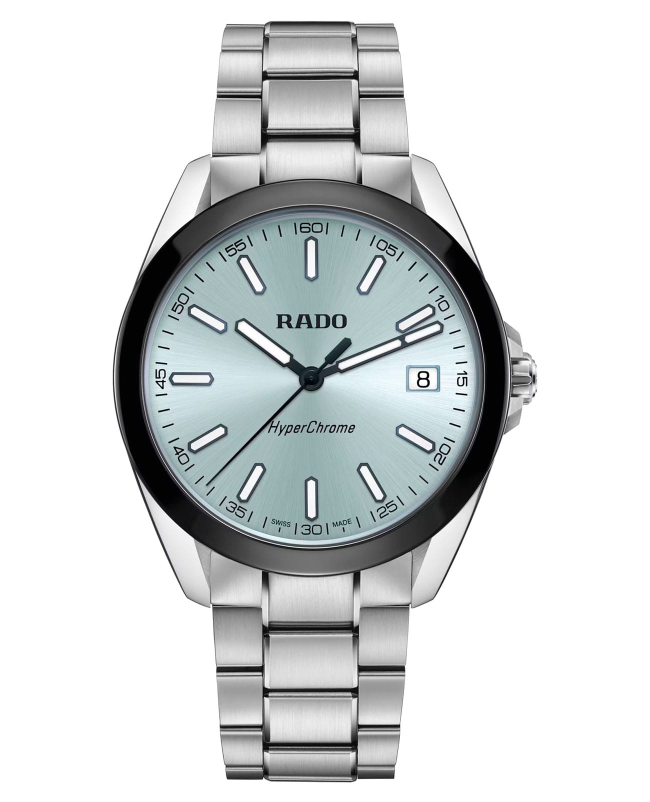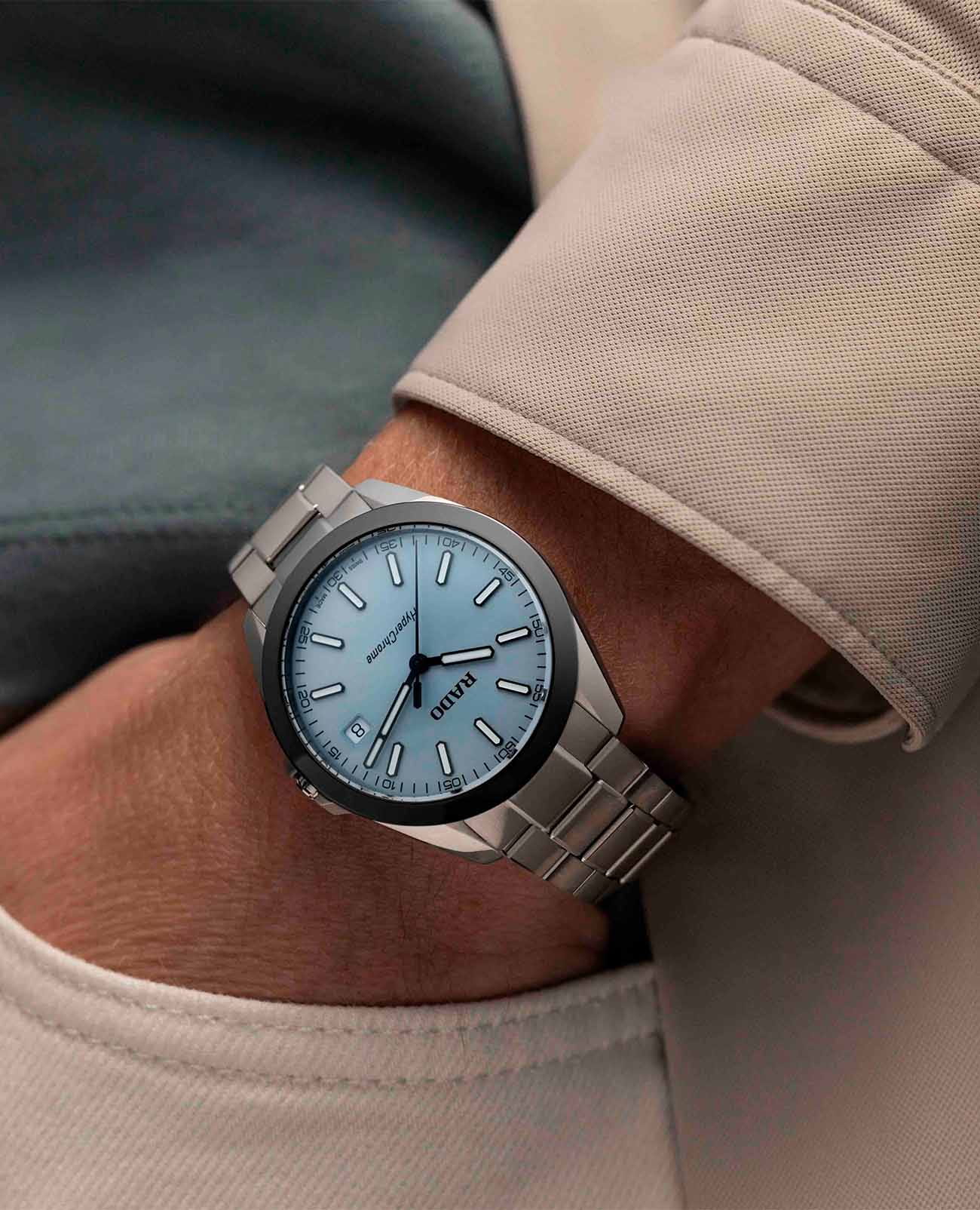 Мужские кварцевые часы Rado HyperChrome — это современное воплощение точности и мастерства материалов. Корпус диаметром 41,5 мм и толщиной 11,7 мм выполнен из полированной и матовой нержавеющей стали. БезельБезельВнешний ободок, закрепляющий стекло. В спортивных часах так называется поворотное кольцо с делениями на циферблате, выполняет роль таймера – замеряет отрезки времени на шкале. Неподвижный безель – элемент декора. Однонаправленно вращающийся безель на дайверских часах позволяет фиксировать моменты погружения и выныривания на поверхность. изготовлен из высокотехнологичной керамикиВысокотехнологичная керамикаИнновационный запатентованный Rado материал с гладкой или матовой поверхностью. Керамика за счёт кристаллической структуры обладает повышенной устойчивостью от возникновения царапин. Материал способен принимать температуру тела человека, обеспечивая невероятный комфорт при ношении. чёрного цвета, придающей часам прочность и изысканность. Циферблат бирюзового цвета с лакированным покрытием оформлен индексами и стрелками с люминесцентным покрытиемЛюминесцентное покрытиеПозволяет считывать показания времени в темноте. Производители наносят на стрелки, часовые индексы, безель или поверхность циферблата светонакопительный состав, дающий холодное свечение. Super-Luminova®. Особенность подсветки — зелёное свечение метки 12 часов и минутной стрелки, и синее — остальных индексов и часовой стрелки, что обеспечивает интуитивное считывание времени в темноте. Циферблат защищён выпуклым сапфировым стекломСапфировое стеклоПрочный и надёжный материал из кристалла сапфира синтетического происхождения, характеризующийся особой твёрдостью и устойчивостью к царапинам и повреждениям. с антибликовым покрытиемАнтибликовое покрытиеСлой оксида металла в 0,13-0,3 микрон, благодаря которому стекло часов не бликует и не отражает свет. Антибликовое покрытие уменьшает отражение света в 10 раз, обеспечивая отличную читаемость показателей циферблата. на внутренней стороне. Механизм — кварцевый. Окошко даты расположено в положении 3 часов. Часы оснащены трёхрядным стальным браслетом с центральными звеньями и трёхсекционной застёжкой с системой быстрой регулировки. Водонепроницаемость 150 м позволяет использовать часы для плавания и повседневного ношения. Идеальный выбор для тех, кто ценит инновации, точность и смелый дизайн.