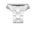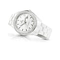 Женские механические швейцарские часы с автоподзаводом Rado Hyperchrome Automatic Diamonds R32483012. Сапфировое стеклоСапфировое стеклоПрочный и надёжный материал из кристалла сапфира синтетического происхождения, характеризующийся особой твёрдостью и устойчивостью к царапинам и повреждениям. устойчивое к мелким механическим повреждениям. Корпус часов изготовлен из нержавеющей стали и керамики. БезельБезельВнешний ободок, закрепляющий стекло. В спортивных часах так называется поворотное кольцо с делениями на циферблате, выполняет роль таймера – замеряет отрезки времени на шкале. Неподвижный безель – элемент декора. Однонаправленно вращающийся безель на дайверских часах позволяет фиксировать моменты погружения и выныривания на поверхность. и корпус украшены бриллиантами. Окошко даты находится в положении 3 часа. Стрелки с люминесцентным покрытиемЛюминесцентное покрытиеПозволяет считывать показания времени в темноте. Производители наносят на стрелки, часовые индексы, безель или поверхность циферблата светонакопительный состав, дающий холодное свечение.. Класс водозащиты: 50 метров, позволит защитить корпус от случайных брызг или капель дождя. Браслет из высокотехнологичной керамикиВысокотехнологичная керамикаИнновационный запатентованный Rado материал с гладкой или матовой поверхностью. Керамика за счёт кристаллической структуры обладает повышенной устойчивостью от возникновения царапин. Материал способен принимать температуру тела человека, обеспечивая невероятный комфорт при ношении. на раскладной застёжкеРаскладная застёжкаТакой тип застёжки используется только на браслетах из металла. Она никогда не раскрывается полностью, происходит разделение на 2 и более частей. Раскладывающая застёжка снизит вероятность потери часов к минимуму..