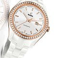 Женские механические швейцарские часы с автоподзаводом Rado Hyperchrome Automatic Diamonds R32524012. Сапфировое стеклоСапфировое стеклоПрочный и надёжный материал из кристалла сапфира синтетического происхождения, характеризующийся особой твёрдостью и устойчивостью к царапинам и повреждениям. устойчивое к мелким механическим повреждениям. Корпус часов изготовлен из нержавеющей стали с PVD-покрытиемPVDУльтратонкое покрытие наносится в технике вакуумного напыления, сочетает в себе нитрид титана особой прочности со слоем золота или оксида хрома. Несёт в себе декоративную или защитную функцию. и керамики. БезельБезельВнешний ободок, закрепляющий стекло. В спортивных часах так называется поворотное кольцо с делениями на циферблате, выполняет роль таймера – замеряет отрезки времени на шкале. Неподвижный безель – элемент декора. Однонаправленно вращающийся безель на дайверских часах позволяет фиксировать моменты погружения и выныривания на поверхность. из керамики украшен бриллиантами. Окошко даты находится в положении 3 часа. Стрелки с люминесцентным покрытиемЛюминесцентное покрытиеПозволяет считывать показания времени в темноте. Производители наносят на стрелки, часовые индексы, безель или поверхность циферблата светонакопительный состав, дающий холодное свечение.. Класс водозащиты: 50 метров, позволит защитить корпус от случайных брызг или капель дождя. Браслет из высокотехнологичной керамикиВысокотехнологичная керамикаИнновационный запатентованный Rado материал с гладкой или матовой поверхностью. Керамика за счёт кристаллической структуры обладает повышенной устойчивостью от возникновения царапин. Материал способен принимать температуру тела человека, обеспечивая невероятный комфорт при ношении. на раскладной застёжкеРаскладная застёжкаТакой тип застёжки используется только на браслетах из металла. Она никогда не раскрывается полностью, происходит разделение на 2 и более частей. Раскладывающая застёжка снизит вероятность потери часов к минимуму..