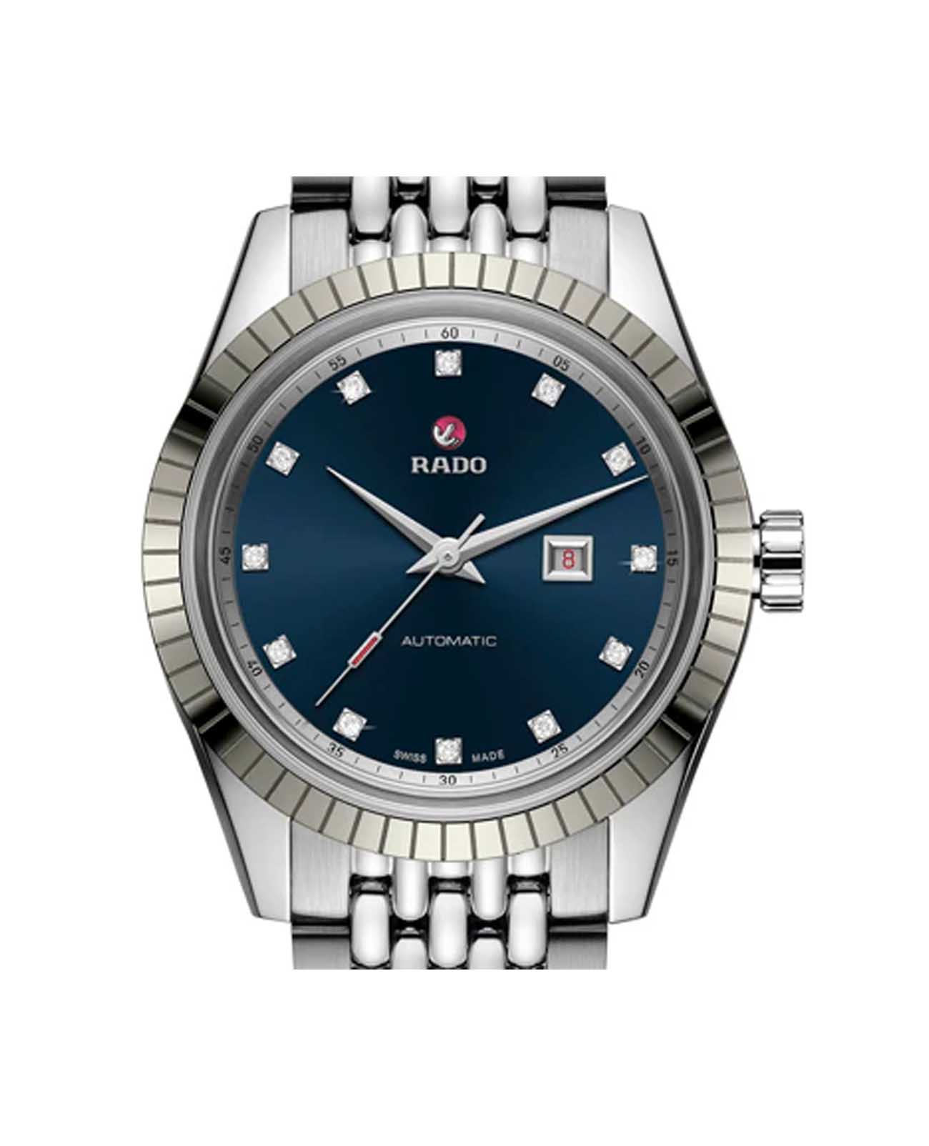 Мужские механические швейцарские часы с автоподзаводом Rado Hyperchrome Classic R33103713. Сапфировое стеклоСапфировое стеклоПрочный и надёжный материал из кристалла сапфира синтетического происхождения, характеризующийся особой твёрдостью и устойчивостью к царапинам и повреждениям. устойчивое к мелким механическим повреждениям. Корпус часов изготовлен из нержавеющей стали. БезельБезельВнешний ободок, закрепляющий стекло. В спортивных часах так называется поворотное кольцо с делениями на циферблате, выполняет роль таймера – замеряет отрезки времени на шкале. Неподвижный безель – элемент декора. Однонаправленно вращающийся безель на дайверских часах позволяет фиксировать моменты погружения и выныривания на поверхность. из высокотехнологичной керамикиВысокотехнологичная керамикаИнновационный запатентованный Rado материал с гладкой или матовой поверхностью. Керамика за счёт кристаллической структуры обладает повышенной устойчивостью от возникновения царапин. Материал способен принимать температуру тела человека, обеспечивая невероятный комфорт при ношении.. Окошко даты находится в положении 3 часа. Циферблат укаршен бриллиантами. Класс водозащиты: 50 метров, позволит защитить корпус от случайных брызг или капель дождя. Стальной браслет на раскладной застёжкеРаскладная застёжкаТакой тип застёжки используется только на браслетах из металла. Она никогда не раскрывается полностью, происходит разделение на 2 и более частей. Раскладывающая застёжка снизит вероятность потери часов к минимуму..