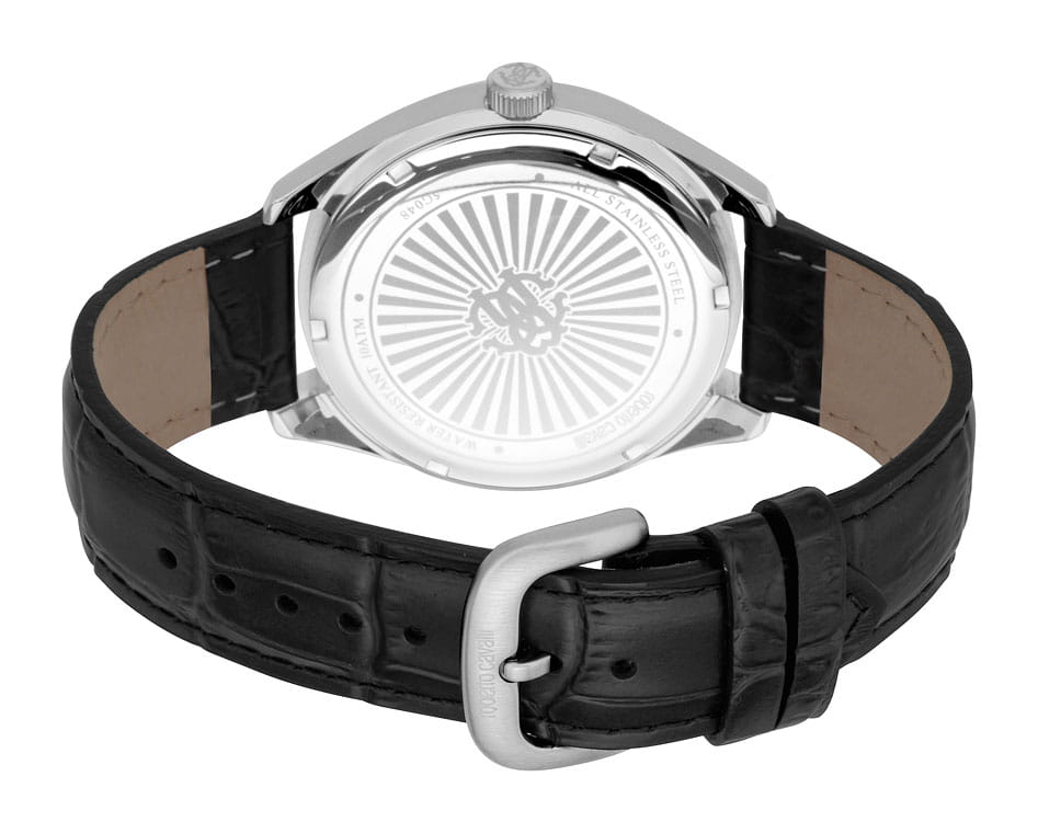 ROBERTO CAVALLI Uomo Mio RC5G048L0015 — стильные итальянские часы, которые сочетают в себе элегантность и современный функционал. Круглый корпус диаметром 42 мм выполнен из нержавеющей стали, толщина корпуса составляет 12 мм, что придает модели выразительный внешний вид и надежную защиту от внешних воздействий. Часы оснащены кварцевым механизмом, также обладают функцией отображения даты, что делает их удобными для ежедневного использования. Минеральное стеклоМинеральное стеклоМинеральное стекло представляет собой искусственно выращенный минерал кварца. Такое стекло отличается особой устойчивостью к повреждениям и царапинам. Уступает по некоторым качествам сапфировому стеклу. защищает часы от царапин. Водозащита 100 метров, позволит плавать, нырять и заниматься другими водными видами спорта. Кожаный ремешок на стандартной застёжке обеспечивает комфортное ношение. Стрелки и метки с люминесцентным покрытиемЛюминесцентное покрытиеПозволяет считывать показания времени в темноте. Производители наносят на стрелки, часовые индексы, безель или поверхность циферблата светонакопительный состав, дающий холодное свечение. обеспечивают отличную читаемость в любое время суток.
