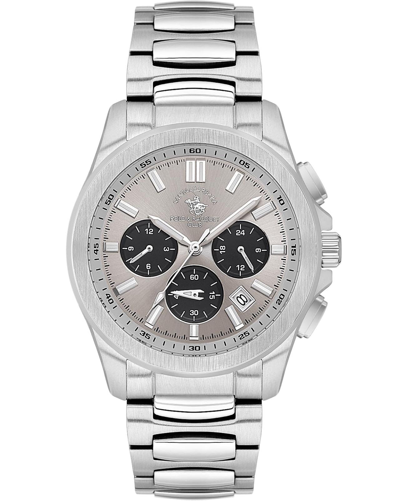 Santa Barbara Polo & Racquet Club Legend SB.1.10582-1 — стильные мужские часы, сочетающие спортивную динамику и функциональность. Крупный корпус выполнен из нержавеющей стали и гармонично дополнен браслетом на застёжке-бабочкеЗастёжка "бабочка"Такой вид застёжки дополняется предохранителями, помогающими избежать случайного раскрытия браслета. Обладают изящным исполнением. . Циферблат с акцентными метками и стрелками с люминесцентным покрытиемЛюминесцентное покрытиеПозволяет считывать показания времени в темноте. Производители наносят на стрелки, часовые индексы, безель или поверхность циферблата светонакопительный состав, дающий холодное свечение. оформлен в многослойной структуре и оснащён вспомогательными индикаторами, включая 24-часовой формат, второй часовой поясВторой часовой поясФункция, позволяющая отображать время двух часовых поясов одновременно.. В нижней части расположено окошко даты, что делает модель ещё более практичной. Минеральное стеклоМинеральное стеклоМинеральное стекло представляет собой искусственно выращенный минерал кварца. Такое стекло отличается особой устойчивостью к повреждениям и царапинам. Уступает по некоторым качествам сапфировому стеклу. защищает циферблат от царапин, а кварцевый механизм обеспечивает высокую точность. Благодаря своей универсальной эстетике эти часы уместны и в деловой среде, и в повседневном образе.