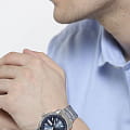 Брендовый аксессуар подойдёт как для ценителей делового стиля, так и для приверженцев активного образа жизни, предпочитающих спортивную одежду или джинсы. Стрелки и метки с люминесцентным покрытиемЛюминесцентное покрытиеПозволяет считывать показания времени в темноте. Производители наносят на стрелки, часовые индексы, безель или поверхность циферблата светонакопительный состав, дающий холодное свечение.. Стальной браслет на раскладной застёжкеРаскладная застёжкаТакой тип застёжки используется только на браслетах из металла. Она никогда не раскрывается полностью, происходит разделение на 2 и более частей. Раскладывающая застёжка снизит вероятность потери часов к минимуму.. Универсальность модели позволяет сочетать её с любым стилем. В этих наручных часах идеально всё - цветовая гамма, внимание к деталям, оригинальное исполнение. За точность хода в ответе механизмы собственного производства, измеряющие время с минимальной погрешностью. Изготовление и сборка часов происходят исключительно в Японии.