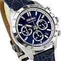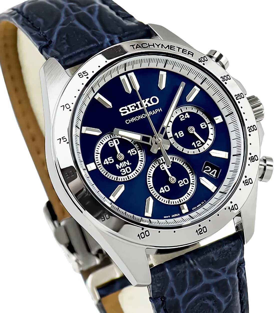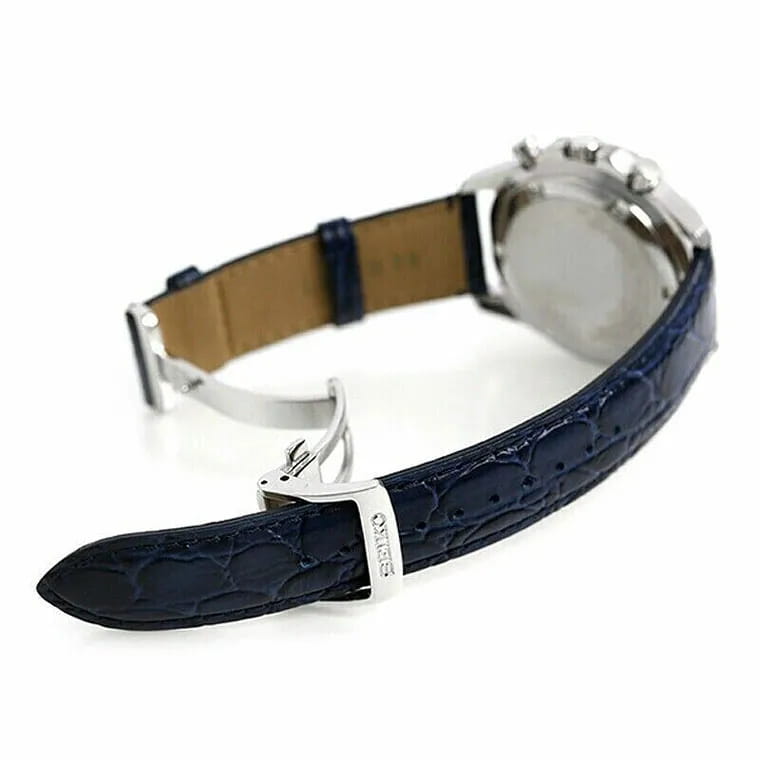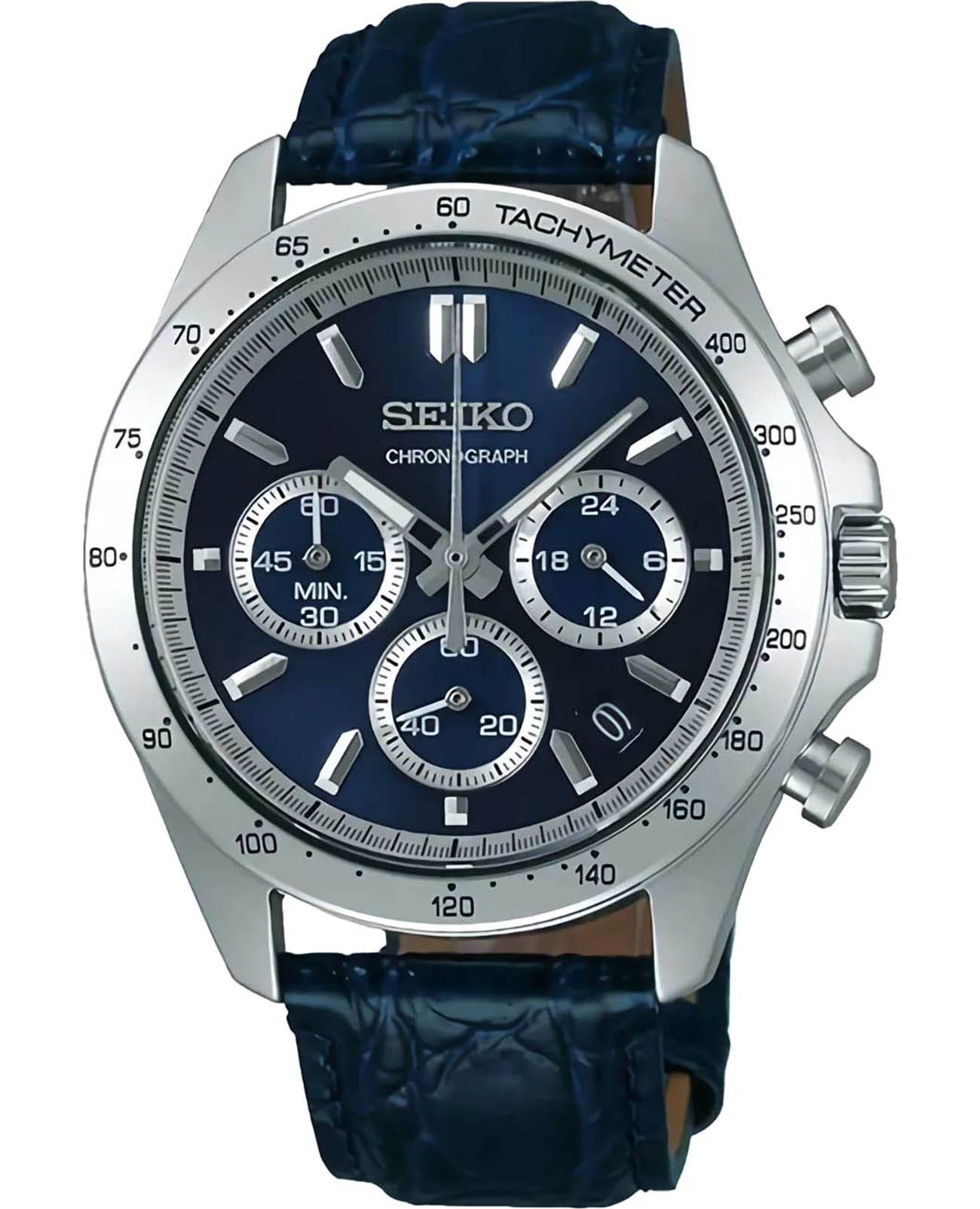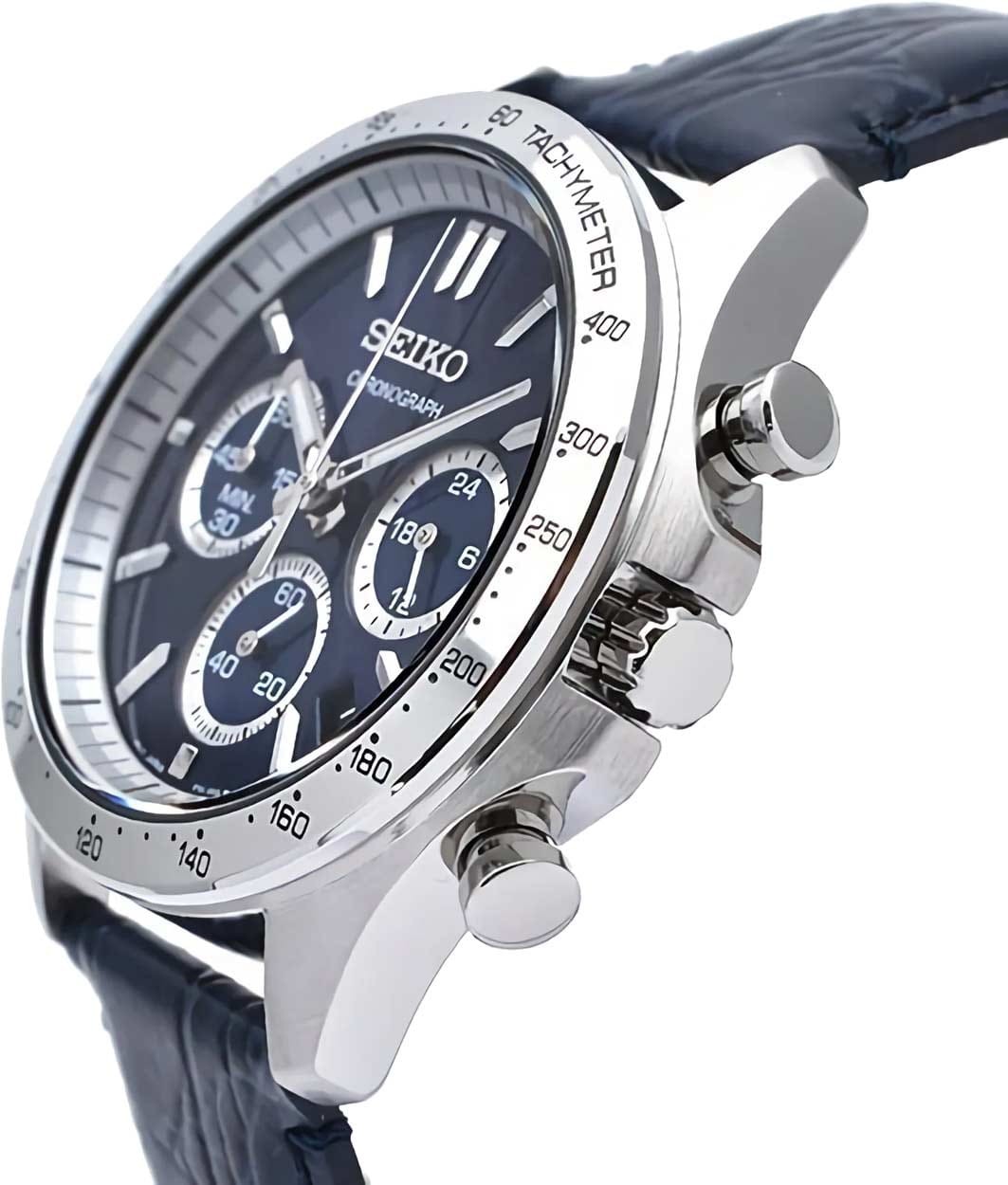 Мужские кварцевые часы-хронограф Seiko из коллекции Spirit — это надёжный и функциональный аксессуар. Корпус диаметром 42 мм выполнен из нержавеющей стали. Циферблат синего цвета выполнен по технологии Sunray («солнечные лучи») и оформлен штрихами. Присутствуют три субциферблата хронографа. Окошко даты расположено между 4 и 5 часами. На циферблате присутствует шкала тахиметраТахиметрРазмеченная шкала, располагается на ободке или безеле часов. Тахиметр позволяет рассчитать скорость на определённом участке пути, расстояние измеряется в километрах или милях.. Стрелки и метки с люминесцентным покрытиемЛюминесцентное покрытиеПозволяет считывать показания времени в темноте. Производители наносят на стрелки, часовые индексы, безель или поверхность циферблата светонакопительный состав, дающий холодное свечение. LumiBrite, обеспечивающим хорошую читаемость в темноте. Циферблат защищён прочным закалённым минеральным стеклом Hardlex. Механизм — японское кварцевое движение калибра 8T63 с функциями хронографаХронографФункция позволяет измерять отрезки времени с особой точностью: часы, минуты, секунды. Верным признаком хронографа является наличие на циферблате 3 дополнительных окошек-счётчиков. и секундомераСекундомерСекундоме́р — прибор, способный измерять интервалы времени с точностью до долей секунды. (точность 1/5 сек., время измерения до 1 часа). Заводная головка с защитой обеспечивает повышенную надёжность. Часы оснащены синим кожаным ремешком на раскладной застёжкеРаскладная застёжкаТакой тип застёжки используется только на браслетах из металла. Она никогда не раскрывается полностью, происходит разделение на 2 и более частей. Раскладывающая застёжка снизит вероятность потери часов к минимуму.. Водонепроницаемость 100 м позволяет использовать часы для плавания и повседневного ношения. Идеальный выбор для тех, кто ценит японское качество и универсальный дизайн.