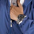Мужские механические часы с автоподзаводом Seiko — это спортивный аксессуар из коллекции Prospex, выпущенный ограниченной серией в честь 55-летия легендарных дайверских часов Seiko — всего 5500 экземпляров. Корпус диаметром 42 мм и толщиной 13 мм выполнен из стали с частичным PVD-покрытиемPVDУльтратонкое покрытие наносится в технике вакуумного напыления, сочетает в себе нитрид титана особой прочности со слоем золота или оксида хрома. Несёт в себе декоративную или защитную функцию.. Циферблат синего цвета оформлен штрихами и логотипом бренда. Окошко даты расположено в положении 3 часов. Стрелки и метки с люминесцентным покрытиемЛюминесцентное покрытиеПозволяет считывать показания времени в темноте. Производители наносят на стрелки, часовые индексы, безель или поверхность циферблата светонакопительный состав, дающий холодное свечение. LumiBrite, обеспечивающим высокую читаемость в темноте. Циферблат защищён изогнутым сапфировым стекломСапфировое стеклоПрочный и надёжный материал из кристалла сапфира синтетического происхождения, характеризующийся особой твёрдостью и устойчивостью к царапинам и повреждениям. с антибликовым покрытиемАнтибликовое покрытиеСлой оксида металла в 0,13-0,3 микрон, благодаря которому стекло часов не бликует и не отражает свет. Антибликовое покрытие уменьшает отражение света в 10 раз, обеспечивая отличную читаемость показателей циферблата. на внутренней поверхности. Механизм — автоматический калибр 6R35 (24 камня, частота 21 600 полуколебаний в час) с возможностью ручного завода и функцией , запас хода до 70 часов. БезельБезельВнешний ободок, закрепляющий стекло. В спортивных часах так называется поворотное кольцо с делениями на циферблате, выполняет роль таймера – замеряет отрезки времени на шкале. Неподвижный безель – элемент декора. Однонаправленно вращающийся безель на дайверских часах позволяет фиксировать моменты погружения и выныривания на поверхность. — однонаправленный, вращающийся. Завинчивающаяся задняя крышка и заводная головка с защитой на позиции 4 часов повышают надёжность. Часы оснащены стальным браслетом с раскладной застёжкойРаскладная застёжкаТакой тип застёжки используется только на браслетах из металла. Она никогда не раскрывается полностью, происходит разделение на 2 и более частей. Раскладывающая застёжка снизит вероятность потери часов к минимуму. с системой блокировки. В комплекте — сменный силиконовый ремешок. Водонепроницаемость 200 м позволяет использовать часы для профессионального плавания и дайвинга. Идеальный выбор для тех, кто ценит историю, точность и мощный дизайн.