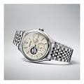 Механические часы Seiko Presage Classic SPB469 — это гармоничное сочетание японского мастерства, технологичности и эстетики. Модель вдохновлена цветами и текстурами традиционных японских ремёсел, что отражается как в дизайне циферблата, так и в общей стилистике часов. Часы оснащены калибром 6R5J — надёжным механизмом с автоподзаводом и возможностью ручной подзаводки. Механизм работает на частоте 21 600 полуколебаний в час, имеет 24 драгоценных камня и обеспечивает запас хода до 72 часов. Также реализована функция стоп-секунды для точной установки времени и защита от магнитных полей до 4800 А/м. Через прозрачное окошко на циферблате можно наблюдать за работой механизма, а также отслеживать время в двух форматах — 12-часовом и 24-часовом. Циферблат бежевого цвета выполнен в стиле «широ-иро» — в оттенке неотбелённого шелка, который при разном освещении играет глубокими переливами. Его поверхность украшена тонкой текстурой, создающей ощущение благородства и изысканности. Метки выполнены в виде аккуратных штрихов, а информация о времени представлена центральными стрелками. Защиту циферблата обеспечивает сапфировое стеклоСапфировое стеклоПрочный и надёжный материал из кристалла сапфира синтетического происхождения, характеризующийся особой твёрдостью и устойчивостью к царапинам и повреждениям. выпуклой формы с антибликовым покрытием с обеих сторон. Корпус изготовлен из нержавеющей стали, а задняя крышка — завинчивающаяся и прозрачная, что позволяет рассмотреть детали работы механизма. Браслет выполнен из стали и оснащён трёхсгибной раскладной застёжкойРаскладная застёжкаТакой тип застёжки используется только на браслетах из металла. Она никогда не раскрывается полностью, происходит разделение на 2 и более частей. Раскладывающая застёжка снизит вероятность потери часов к минимуму., обеспечивающей комфорт и уверенную фиксацию на запястье. Часы водонепроницаемы до 100 метров , что позволяет использовать их при плавании или занятиях водными видами спорта. Эти часы станут универсальным аксессуаром для тех, кто ценит сочетание культурного наследия, технологий и эстетики — идеальный выбор для повседневной носки и торжественных случаев.