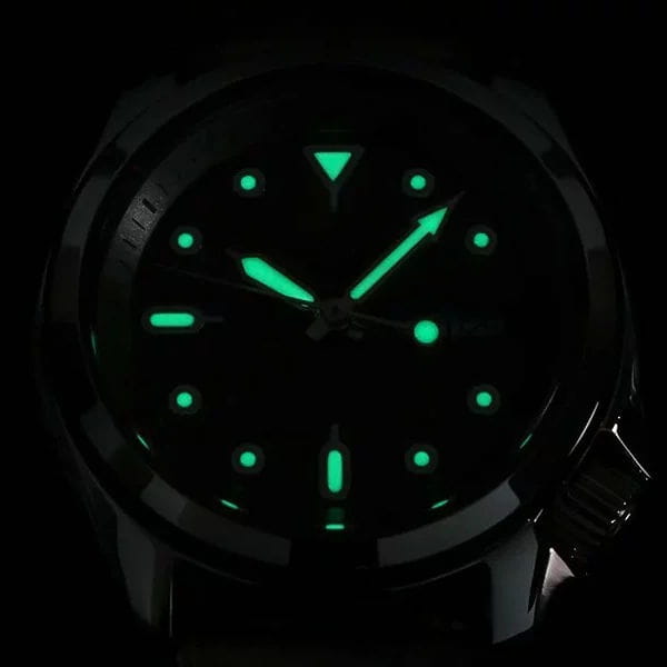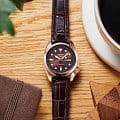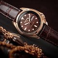 Механические часы с автоподзаводом и возможностью ручной подзаводки оснащены калибром 2R06, в котором используется 21 драгоценный камень. Механизм обеспечивает запас хода до 40 часов и дополнен функцией стоп-секунды для точной установки времени. Корпус изготовлен из нержавеющей стали и защищён минеральным стекломМинеральное стеклоМинеральное стекло представляет собой искусственно выращенный минерал кварца. Такое стекло отличается особой устойчивостью к повреждениям и царапинам. Уступает по некоторым качествам сапфировому стеклу. Hardlex, устойчивым к мелким повреждениям. Циферблат дополнен стрелками и метками с фирменным люминесцентным покрытиемЛюминесцентное покрытиеПозволяет считывать показания времени в темноте. Производители наносят на стрелки, часовые индексы, безель или поверхность циферблата светонакопительный состав, дающий холодное свечение. LumiBrite, обеспечивающим отличную читаемость даже в темноте. Часы обладают водонепроницаемостью , что соответствует защите на глубине до 100 метров, и имеют защиту от магнитных полей до 4800 А/м. Задняя крышка — завинчивающаяся, что обеспечивает дополнительную защиту механизма. Расстояние между ушками составляет 14 мм, что делает модель совместимой с различными типами ремешков. Ремешок из натуральной кожи добавляет модели элегантности и обеспечивает комфорт при ношении. Эти часы станут универсальным аксессуаром для тех, кто ценит сочетание технологичности, прочности и эстетики — идеальный выбор для повседневной носки и особых случаев.