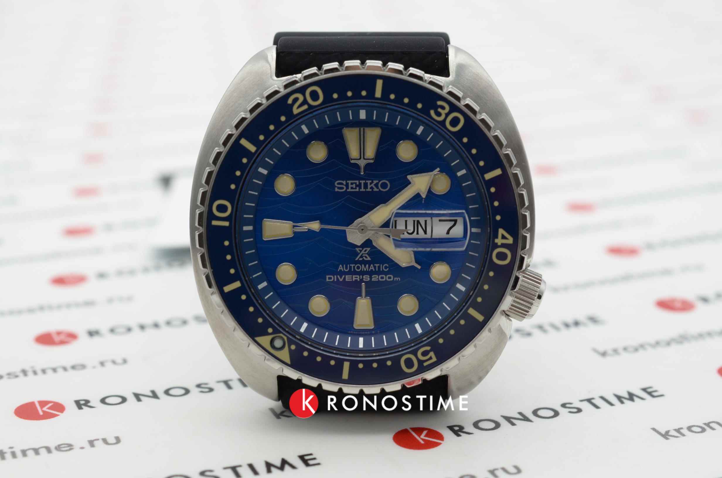 Аксессуар из специальной серии отличается оригинальным дизайном. Чёрный циферблат с узором дополнен метками и стрелками с люминесцентной подсветкойЛюминесцентное покрытиеПозволяет считывать показания времени в темноте. Производители наносят на стрелки, часовые индексы, безель или поверхность циферблата светонакопительный состав, дающий холодное свечение.. Японский автоматический калибр Seiko 4К36 имеет запас хода на 41 час. Корпус выполнен из стали 316L с PVD-покрытиемPVDУльтратонкое покрытие наносится в технике вакуумного напыления, сочетает в себе нитрид титана особой прочности со слоем золота или оксида хрома. Несёт в себе декоративную или защитную функцию.. Рифленая заводная головка защищена, безельБезельВнешний ободок, закрепляющий стекло. В спортивных часах так называется поворотное кольцо с делениями на циферблате, выполняет роль таймера – замеряет отрезки времени на шкале. Неподвижный безель – элемент декора. Однонаправленно вращающийся безель на дайверских часах позволяет фиксировать моменты погружения и выныривания на поверхность. вращается в одном направлении. Индикатор даты отображает число и день недели.