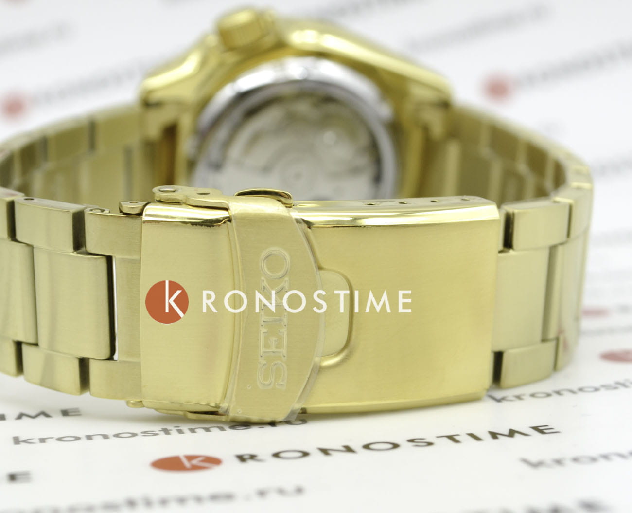 Водозащита 100 метров (10 бар) позволяет использовать часы для плавания и других водных видов спорта. Стальной браслет с PVD-покрытиемPVDУльтратонкое покрытие наносится в технике вакуумного напыления, сочетает в себе нитрид титана особой прочности со слоем золота или оксида хрома. Несёт в себе декоративную или защитную функцию. золотого цвета и раскладной застёжкойРаскладная застёжкаТакой тип застёжки используется только на браслетах из металла. Она никогда не раскрывается полностью, происходит разделение на 2 и более частей. Раскладывающая застёжка снизит вероятность потери часов к минимуму. обеспечивает комфортное ношение и надёжную фиксацию на запястье. ​​
