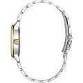 Женские японские часы Seiko Discover More SUR410P1 c кварцевым механизмом с высокой точностью с калибром 6N22. Минеральное стеклоМинеральное стеклоМинеральное стекло представляет собой искусственно выращенный минерал кварца. Такое стекло отличается особой устойчивостью к повреждениям и царапинам. Уступает по некоторым качествам сапфировому стеклу. с повышенной прочностью Hardlex устойчивое к появлению царапин, обладающее высокой прозрачностью. Водозащита до 5 ATM позволяет не снимать часы при дожде, мытье рук или случайных брызгах. Корпус диаметром 30 мм и браслет изготовлены из нержавеющей стали с PVDPVDУльтратонкое покрытие наносится в технике вакуумного напыления, сочетает в себе нитрид титана особой прочности со слоем золота или оксида хрома. Несёт в себе декоративную или защитную функцию. покрытием. Браслет с раскладной застёжкойРаскладная застёжкаТакой тип застёжки используется только на браслетах из металла. Она никогда не раскрывается полностью, происходит разделение на 2 и более частей. Раскладывающая застёжка снизит вероятность потери часов к минимуму. с фиксатором. Белый циферблат с метками в виде штрихов, окошко с датой находится в позиции 3 часов. Seiko — это гармония изящного дизайна и технологичной надёжности, компактный и стильный выбор для повседневной классики.