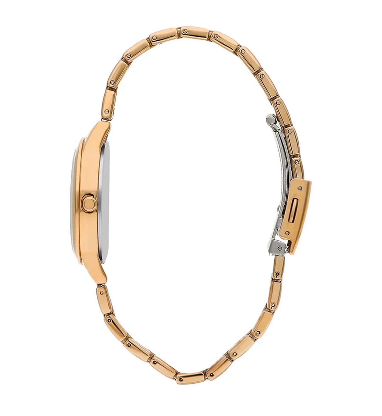 Женские наручные часы Slazenger SL.09.2016.3.02 из коллекции, сочетающей элегантность и практичность в классическом дизайне. Модель обладает круглым корпусом диаметром 32 мм, изготовленным из суперметалла с IP-покрытиемIP-покрытиеМетод ионного напыления. Демонстрирует повышенную устойчивость к истиранию, окислению и химическим веществам. Под воздействием высокого давления и температуры около 1500°C молекулы металла надёжно соединяются с частицами корпуса часов., что обеспечивает высокую устойчивость к внешним воздействиям. Браслет выполнен из того же материала с раскладной застежкойРаскладной замокДанный вариант застежки используется только на часах с металлическим браслетом. Отличительная особенность такого крепления в том, что длина браслета становится универсальной и вы можете самостоятельно отрегулировать нужный вам размер – застежка просто двигается по браслету часов., гарантирующей комфортное ношение и безопасность. Для защиты используется минеральное стеклоМинеральное стеклоМинеральное стекло представляет собой искусственно выращенный минерал кварца. Такое стекло отличается особой устойчивостью к повреждениям и царапинам. Уступает по некоторым качествам сапфировому стеклу., обеспечивающее прочную защиту от царапин. Часы работают на японском кварцевом механизме, что гарантирует точное время без необходимости подзаводки. Водонепроницаемость часов достигает 5 атмосфер (50 метров), что позволяет использовать их для ежедневного использования, включая контакт с водой, но не рекомендуется для плавания или дайвинга.