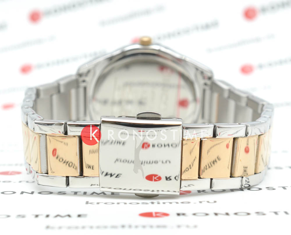 Женские наручные часы Slazenger SL.09.2032.4.05 сочетают в себе элегантный дизайн и функциональность, подходящие для повседневного использования. Модель обладает круглым корпусом диаметром 35 мм, выполненным из суперметалла с IP-покрытиемIP-покрытиеМетод ионного напыления. Демонстрирует повышенную устойчивость к истиранию, окислению и химическим веществам. Под воздействием высокого давления и температуры около 1500°C молекулы металла надёжно соединяются с частицами корпуса часов., что обеспечивает устойчивость к царапинам и коррозии. Браслет изготовлен из суперметалла с двухцветным покрытием (золотой и серебристый), дополненный раскладной застежкойРаскладная застёжкаТакой тип застёжки используется только на браслетах из металла. Она никогда не раскрывается полностью, происходит разделение на 2 и более частей. Раскладывающая застёжка снизит вероятность потери часов к минимуму., обеспечивающей удобство и надежность при ношении. Циферблат белого перламутрового цвета украшен люминесцентным покрытиемЛюминесцентное покрытиеПозволяет считывать показания времени в темноте. Производители наносят на стрелки, часовые индексы, безель или поверхность циферблата светонакопительный состав, дающий холодное свечение. на стрелках, что позволяет легко определять время в темноте. Для защиты циферблата используется минеральное стеклоМинеральное стеклоМинеральное стекло представляет собой искусственно выращенный минерал кварца. Такое стекло отличается особой устойчивостью к повреждениям и царапинам. Уступает по некоторым качествам сапфировому стеклу., устойчивое к царапинам и повреждениям. Часы оснащены кварцевым механизмом, обеспечивающим точность хода с погрешностью не более ±15 секунд в месяц. Модель также включает функции отображения даты, дня недели и 24-часового формата времени, что делает их практичными для ежедневного использования. Водонепроницаемость часов составляет 30 метров (3 ATM), что позволяет использовать их при мытье рук или под дождем, но не рекомендуется для плавания или дайвинга. Вес модели — 89 грамм, что обеспечивает комфортное ношение. Производитель предоставляет гарантию сроком 12 месяцев. Slazenger SL.09.2032.4.05 — это стильный аксессуар, который подчеркнет элегантность и утонченность образа современной женщины.